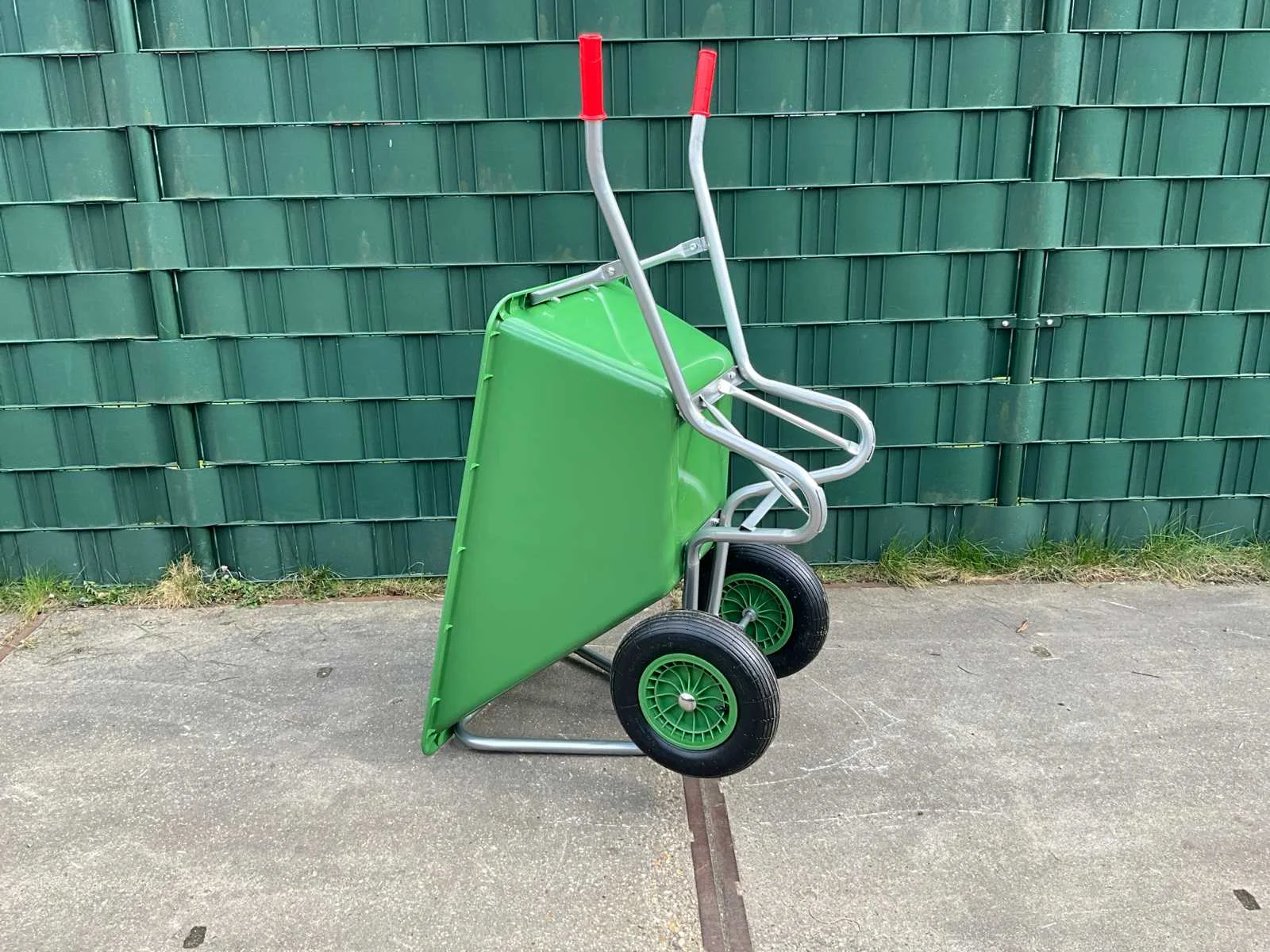 Stevige kruiwagen met grote 160 liter bak en dubbel wiel voor extra stabiliteit; Verzinkt frame; Kunststof wielen met rollager en luchtbanden; 4.80/4.00-8; nylon tube; max inflation 2.0 bar maz snelheid 20 KM/H; Extra stevige kunststof bak; De maximum laadcapaciteit is 200 kg; Geleverd als bouwpakket zie laatste foto's Merk: HH Model: Poly 160 liter 2 wielen Kleur: Groen Gewicht: 18kg Lengte: 165cm Breedte: 71cm Hoogte: 80cm Materiaal: Kunststof / metaal