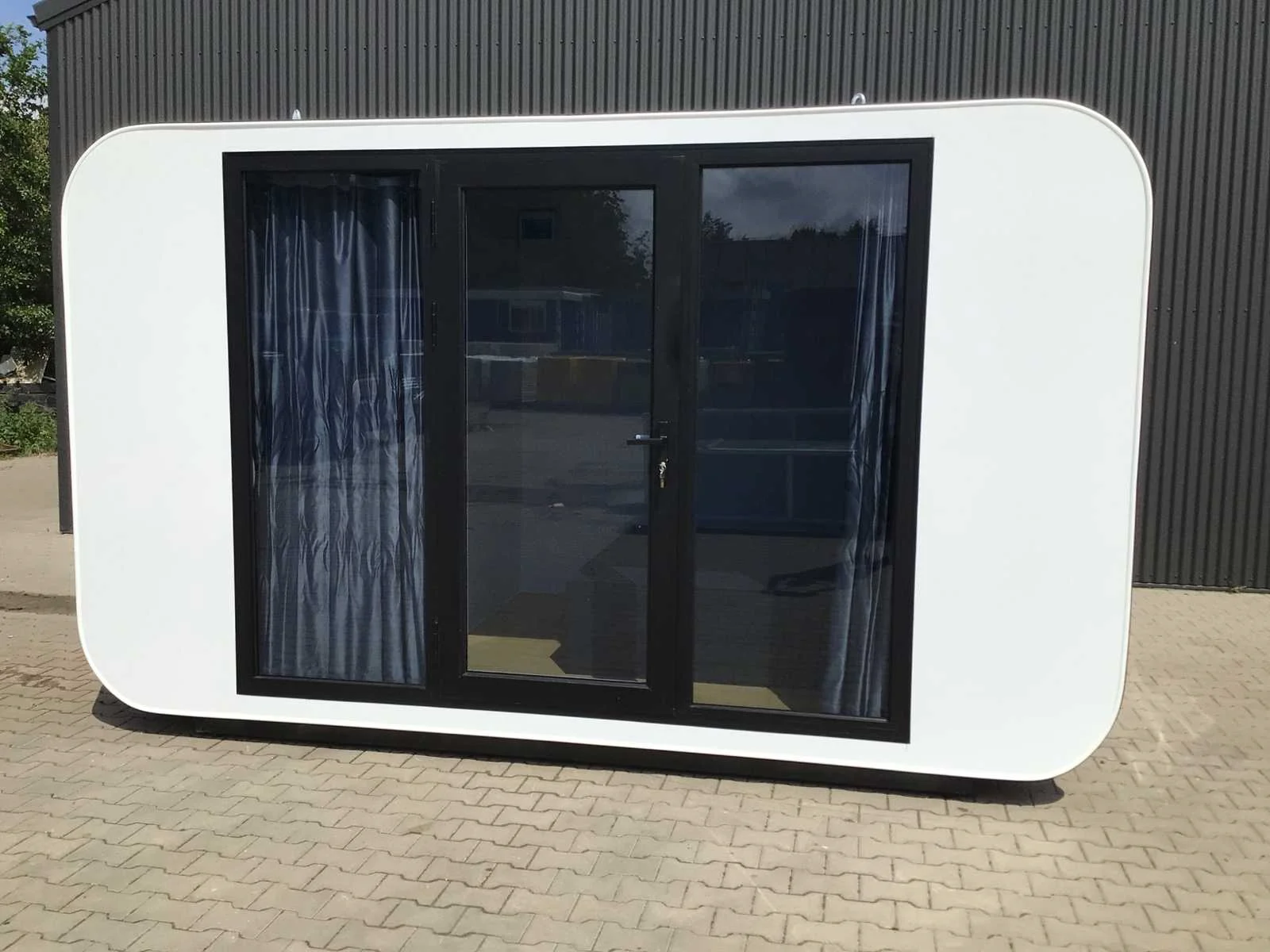 Geïsoleerde wanden en dak; aluminium kozijnen met dubbele zonwerende beglazing; afsluitbaar met sleutel en knopcilinder; uitzetraam; transportafmeting 3950x2300x2450 mm (lxbxh); hijsogen; frame onderzijde v.v. lepelgaten en stelpoten; (deze kavel past in de 40 ft LYPU container); ongebruikt © Intern: sanitaire ruimte met douche; toilet; wastafel met mengkraan en onderkastjes; spiegel met 3 keuze verlichting; ventilator; 220 volt wandcontactdozen met USB aansluiting; led plafondverlichting; 2 stuks uitzetramen met zonwering en horrengaas; gordijnen; bed box met opbergruimte; aardlekschakelaar; kast -opbergruimte; (excl. accessoires) indeling kan iets anders uitgevoerd zijn dan op foto's is weergegeven. Betreft type- B Externe materialen: Aluminium composiet paneel; wit fluorkoolstof enkelvoudig gecoat aluminium plaat; dubbellaagse lichtgewicht hoge druksterkte Interne materialen; Vlakke knoopplaat van hout-kunststof; ecologische plaat van EO-kwaliteit Merk: Easy-Going Model: Eco 4000 Kleur: wit Gewicht: 1100 Lengte: 3950 Breedte: 2300 Hoogte: 2450 Materiaal: Aluminium composiet paneel