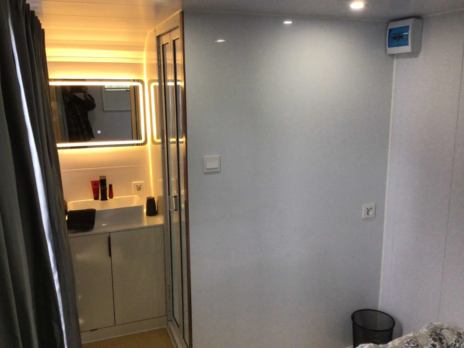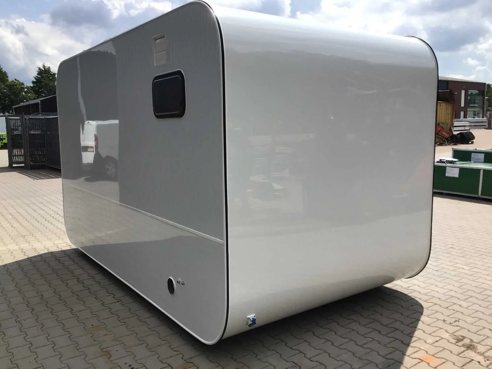 Geïsoleerde wanden en dak; aluminium kozijnen met dubbele zonwerende beglazing; afsluitbaar met sleutel en knopcilinder; uitzetraam; transportafmeting 3950x2300x2450 mm (lxbxh); hijsogen; frame onderzijde v.v. lepelgaten en stelpoten; (deze kavel past in de 40 ft LYPU container); ongebruikt © Intern: sanitaire ruimte met douche; toilet; wastafel met mengkraan en onderkastjes; spiegel met 3 keuze verlichting; ventilator; 220 volt wandcontactdozen met USB aansluiting; led plafondverlichting; 2 stuks uitzetramen met zonwering en horrengaas; gordijnen; bed box met opbergruimte; aardlekschakelaar; kast -opbergruimte; (excl. accessoires) indeling kan iets anders uitgevoerd zijn dan op foto's is weergegeven; Betreft type- B Externe materialen: Aluminium composiet paneel; wit fluorkoolstof enkelvoudig gecoat aluminium plaat; dubbellaagse lichtgewicht hoge druksterkte Interne materialen; Vlakke knoopplaat van hout-kunststof; ecologische plaat van EO-kwaliteit Merk: Easy-Going Model: Eco 4000 Kleur: wit Gewicht: 1100 Lengte: 3950 Breedte: 2300 Hoogte: 2450 Materiaal: Aluminium composiet paneel
