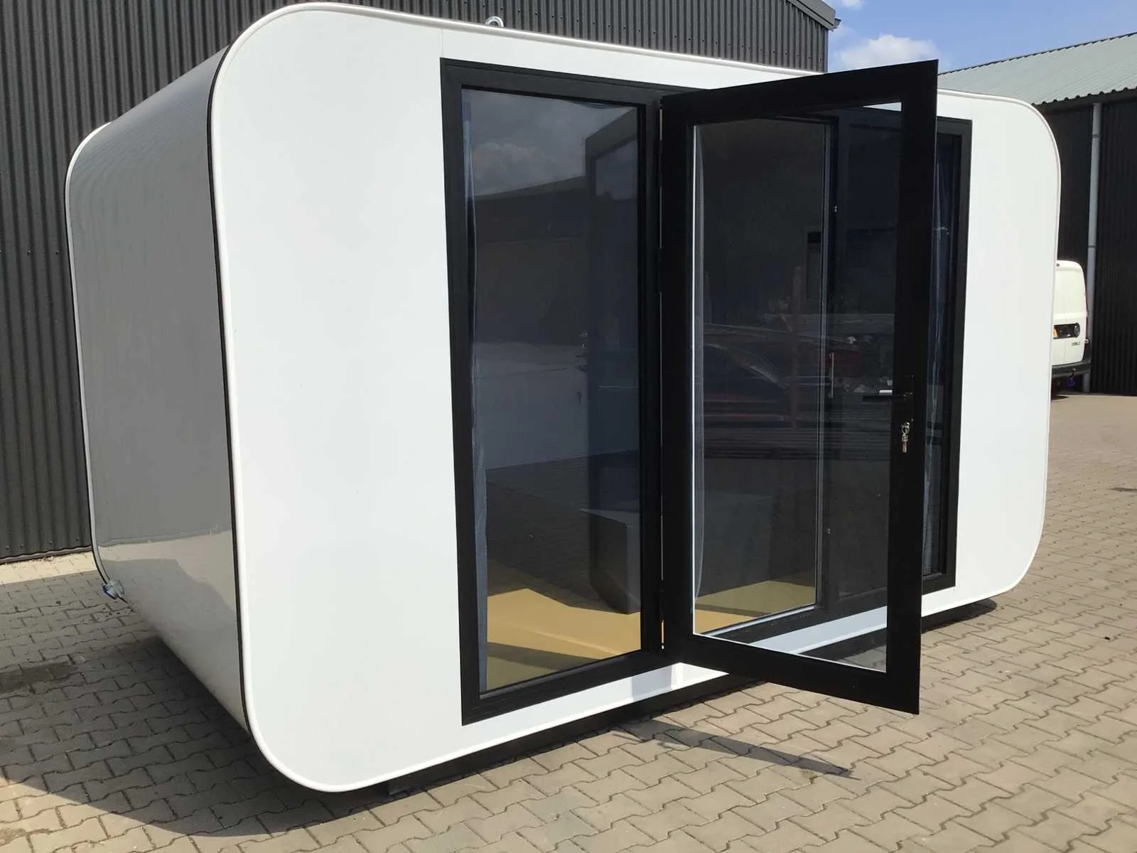 Geïsoleerde wanden en dak; aluminium kozijnen met dubbele zonwerende beglazing; afsluitbaar met sleutel en knopcilinder; uitzetraam; transportafmeting 3950x2300x2450 mm (lxbxh); hijsogen; frame onderzijde v.v. lepelgaten en stelpoten; (deze kavel past in de 40 ft LYPU container); ongebruikt © Intern: sanitaire ruimte met douche; toilet; wastafel met mengkraan en onderkastjes; spiegel met 3 keuze verlichting; ventilator; 220 volt wandcontactdozen met USB aansluiting; led plafondverlichting; 2 stuks uitzetramen met zonwering en horrengaas; gordijnen; bed box met opbergruimte; aardlekschakelaar; kast -opbergruimte; (excl. accessoires) indeling kan iets anders uitgevoerd zijn dan op foto's is weergegeven; Betreft type- B Externe materialen: Aluminium composiet paneel; wit fluorkoolstof enkelvoudig gecoat aluminium plaat; dubbellaagse lichtgewicht hoge druksterkte Interne materialen; Vlakke knoopplaat van hout-kunststof; ecologische plaat van EO-kwaliteit Merk: Easy-Going Model: Eco 4000 Kleur: wit Gewicht: 1100 Lengte: 3950 Breedte: 2300 Hoogte: 2450 Materiaal: Aluminium composiet paneel