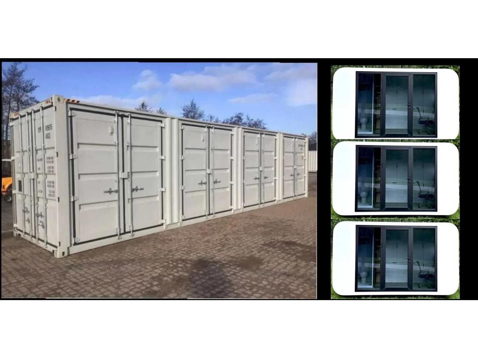 Dit betreft een combinatie kavel van kavels 54 t/m 57; eventuele Franco levering is tegen meerprijs mogelijk; Geschikt voor transport overzee; Merk: Easy-Going Model: Eco 4000 + 40 ft zeencontainer Kleur: wit Materiaal: Aluminium composiet paneel