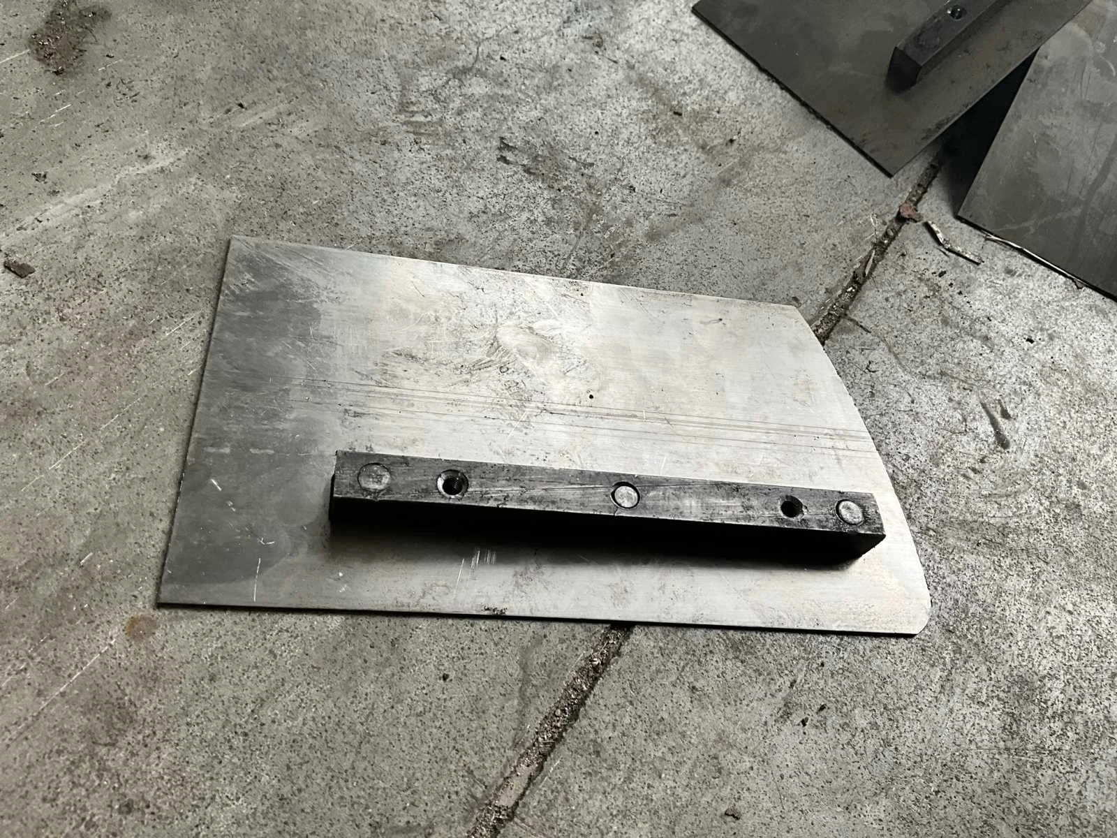 Schuurblad; schuurschijf; betontroffelbladen afwerkbladen; 220x125 mm; algemene dikte 2,2 mm; met scheve zijdes; (1 doosje = 4 stuks) h.o.h. boutafstand 100 mm Merk: Easy-Going Type: Mangaanstaal / SBJ600 Bouwjaar: 2025 Afmeting l: 220mm Afmeting b: 125mm