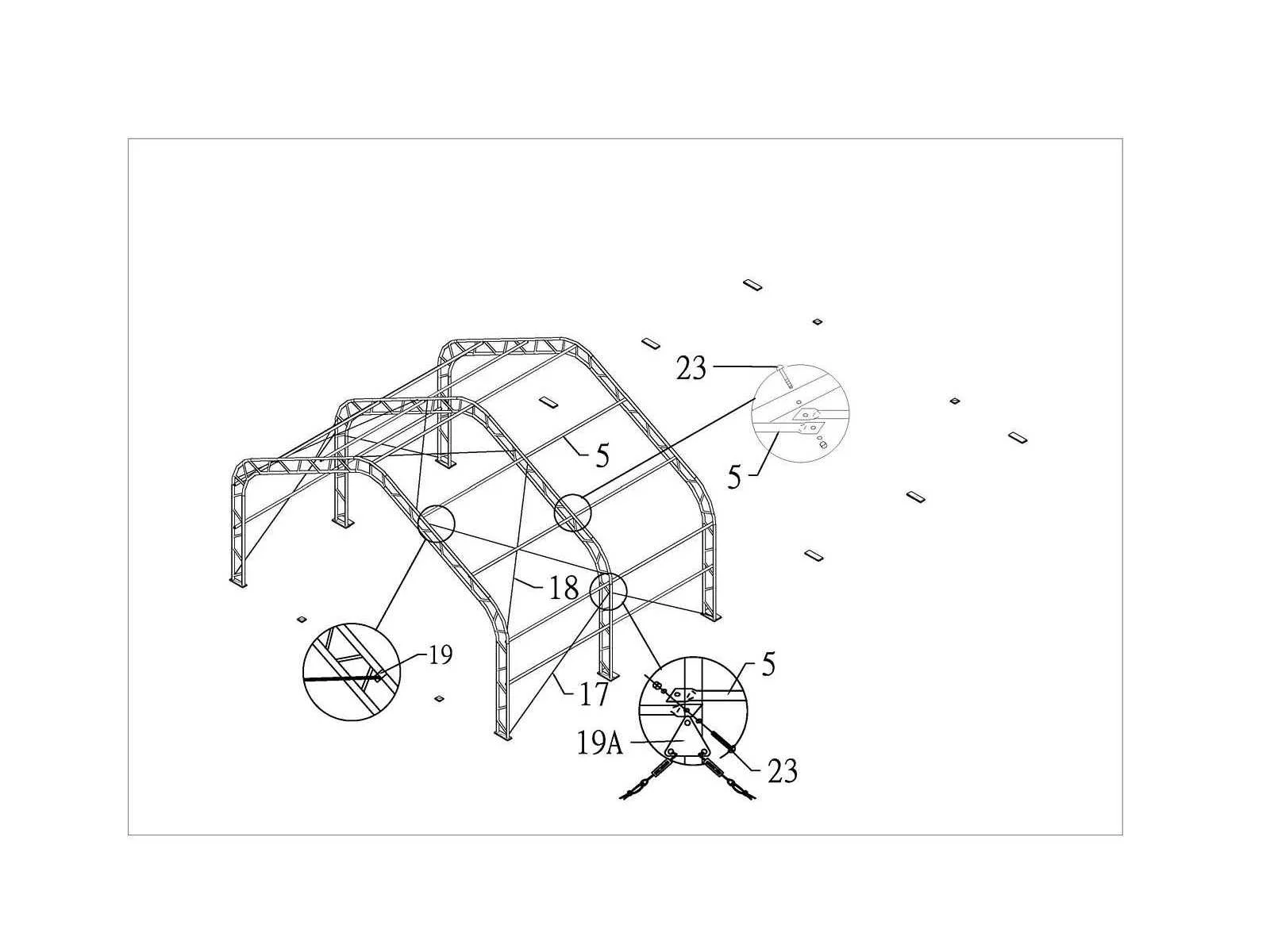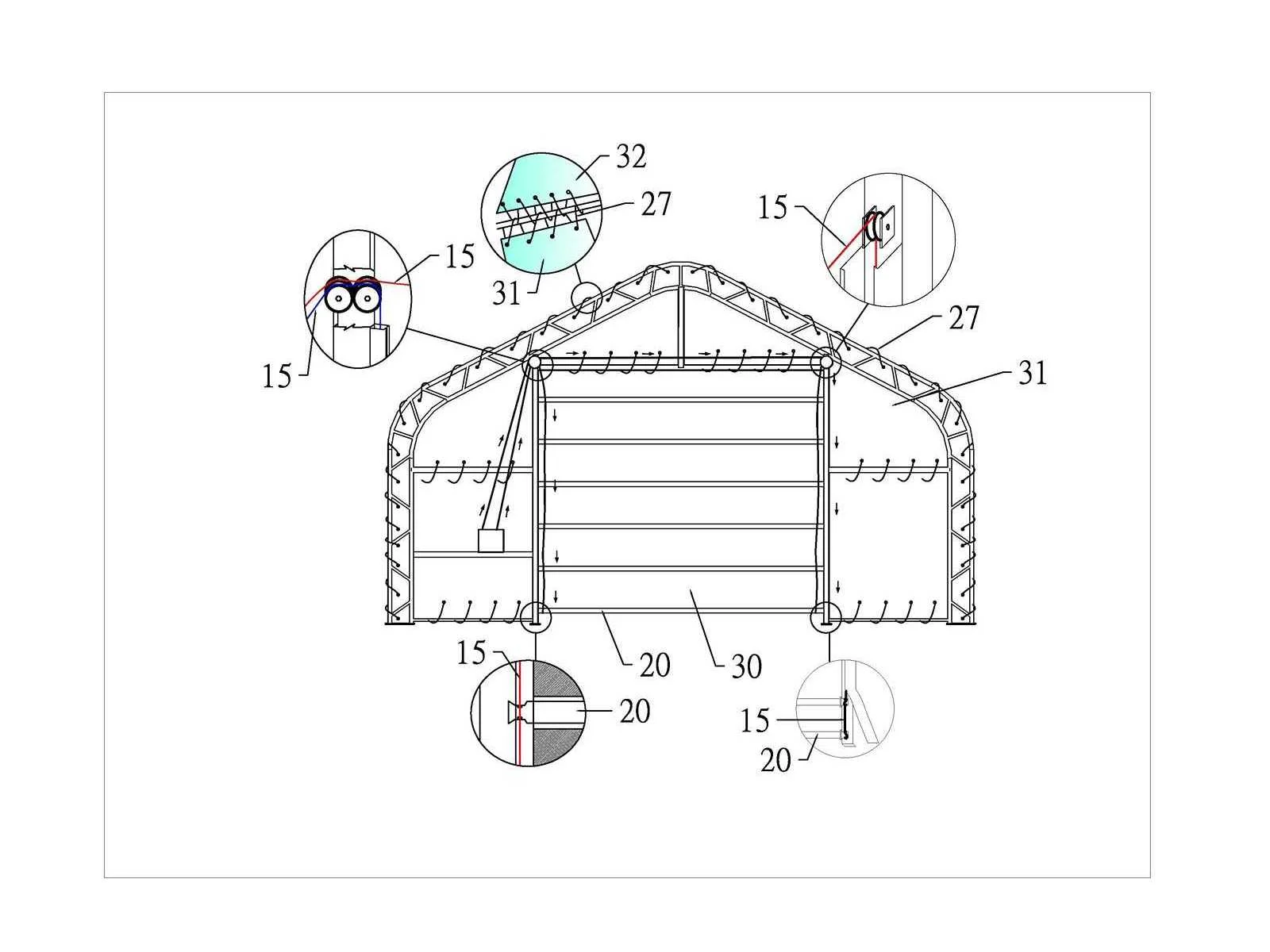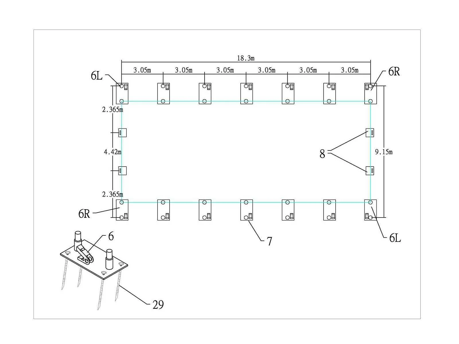 Kader: dubbelspant gegalvaniseerde buis Boog ruimte 3,05 meter Boog 48*1,5 mm Gording 48*1,5 mm Door size W14*H13ft Oproldeur met lier voor en achter Zijmuur 12ft (3,6 m) Stoffen hoes Duurzaam 420 gram PVC Stoffunctie Waterdicht, UV-bestendig, met zelfreinigende eigenschappen Spanningssysteem Pijp- en ratelbevestigingssysteem Opslagtent / garage; v.v. dubbele buizen-/trussensysteem; inclusief montage handleiding; zie voor meer info downloads; ongebruikt in metalen kist Transportafmeting metalen krat: 3150X1110x1170 mm (lxbxh) Merk: Easy-Going Type: (18,3x9,15x6,1 meter) Bouwjaar: 2025 Eigen gewicht: 1665kg Totale afmeting L: 18300mm Totale afmeting Breedte: 9150mm Totale afmeting Hoogte: 6100mm GS Code: 63062200