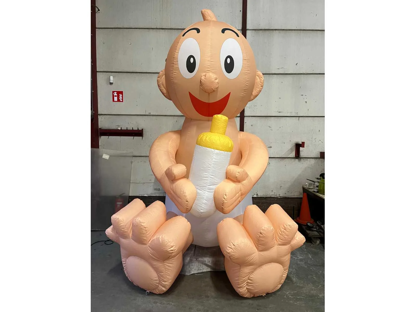 Deze opblaasbare Baby is zowel te gebruiken voor een jongen als voor een meisje daar de banner verwisselbaar is. Deze pop is van hoogwaardige kwaliteit met een duurzaam karakter en uitermate geschikt voor intensieve verhuur. inclusief transporttas, spanttouwen, haringen in haringzakje en banner “Baby Boy” en “Baby Girl”. met ingebouwde blower nylon stof 3 meter hoog Merk: HH Model: Opblaasbare baby met fles Hoogte: 3000