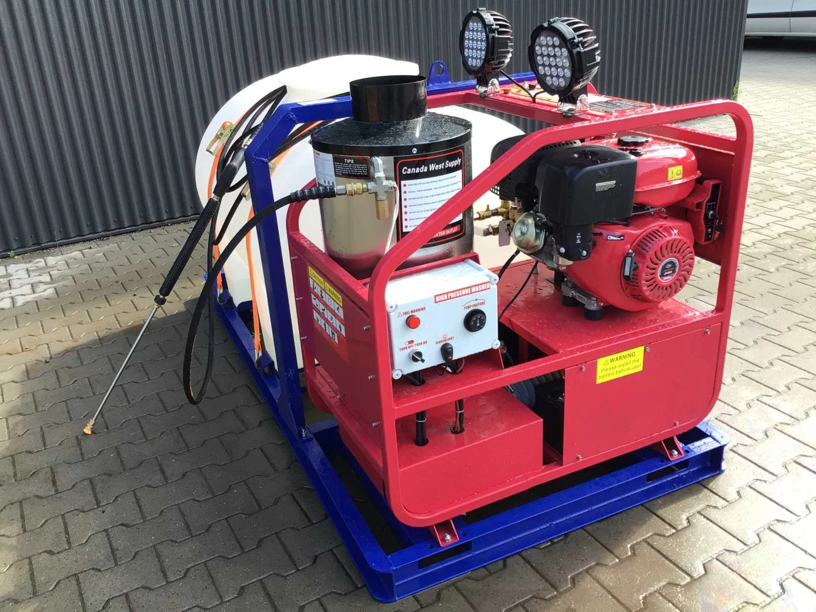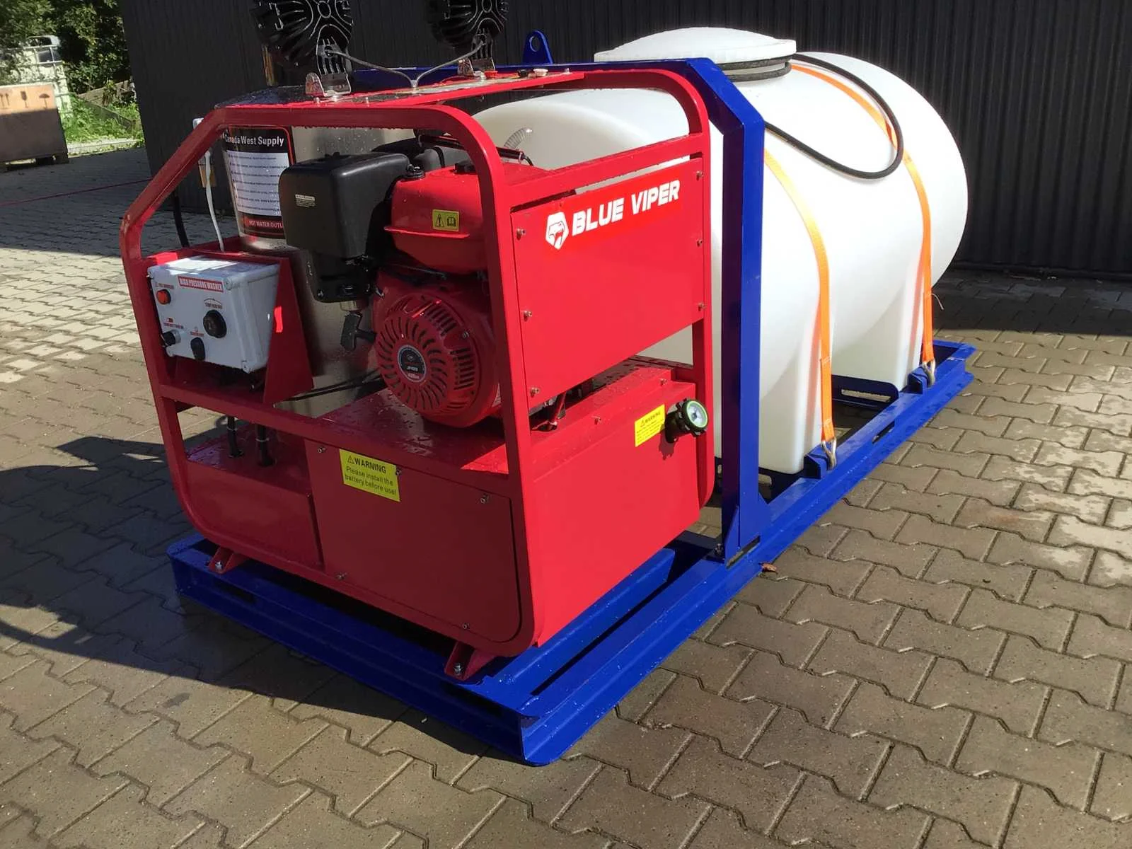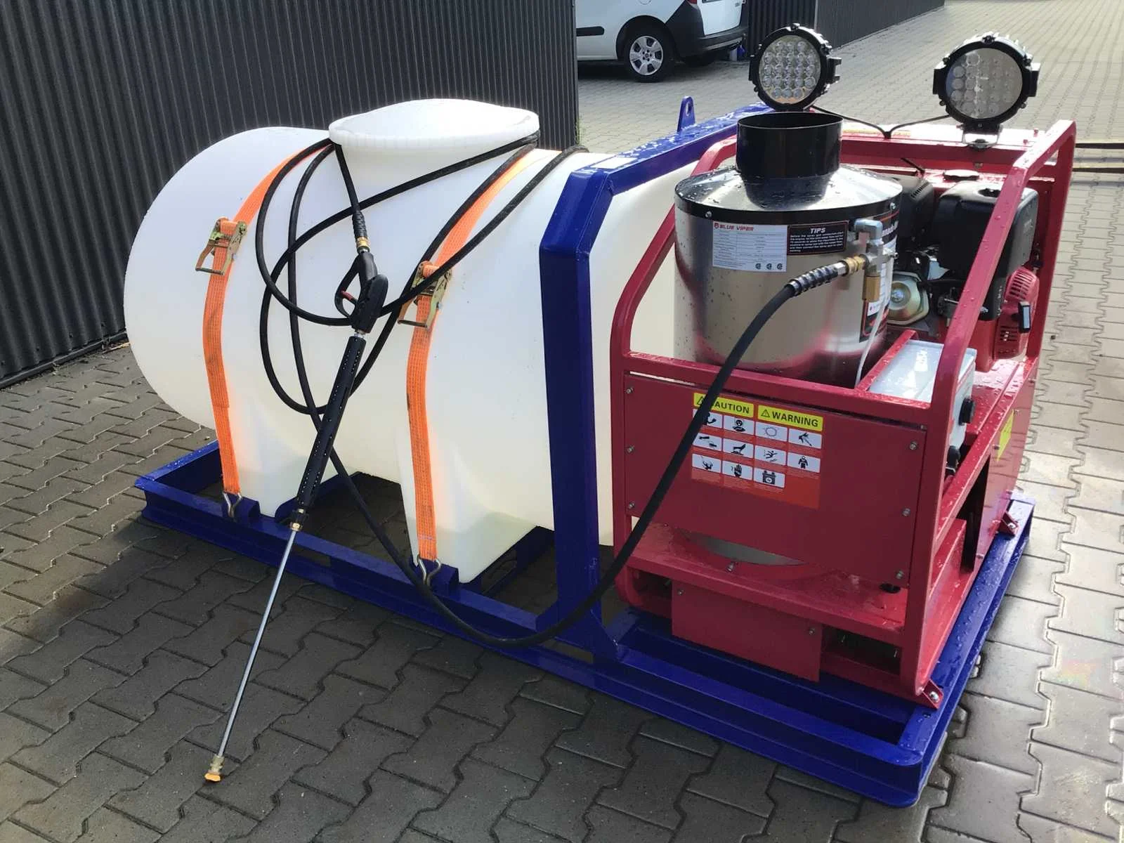 Warmwater hogedrukspuit met buffertank; 2 stuks led werklampen; watertank; hogedrukslang lengte 10 meter; hogedruklans; elektrische start; 16 pk benzinemotor 1 cilinder 4 takt; 4 extra nozzles; instelbare temperatuur tot maximaal 90 °c; rvs diesel gestookte brandersysteem; max werkdruk 4000 PSI (276 bar); inhoud watertank ca 720 liter; voorzien van lepelgaten en te verplaatsen met vorkheftruck / heftruck of shovel; venturi ventiel aansluiting voor toevoeging chemische vloeistof; handleiding aanwezig; © ongebruikt; zie voor meer info downloads Merk: Blue Viper Type: Industrial Hot Water 276 bar Bouwjaar: 2025 Maximale werkdruk: 276bar Temperatuurbereik min.: 0°c Temperatuurbereik max.: 90°c Dieselgestookt: true Mobiel: true Vermogen: 11kW Eigen gewicht: 375kg Totale afmeting L: 2220mm Totale afmeting Breedte: 1140mm Totale afmeting Hoogte: 1200mm GS Code: 842489