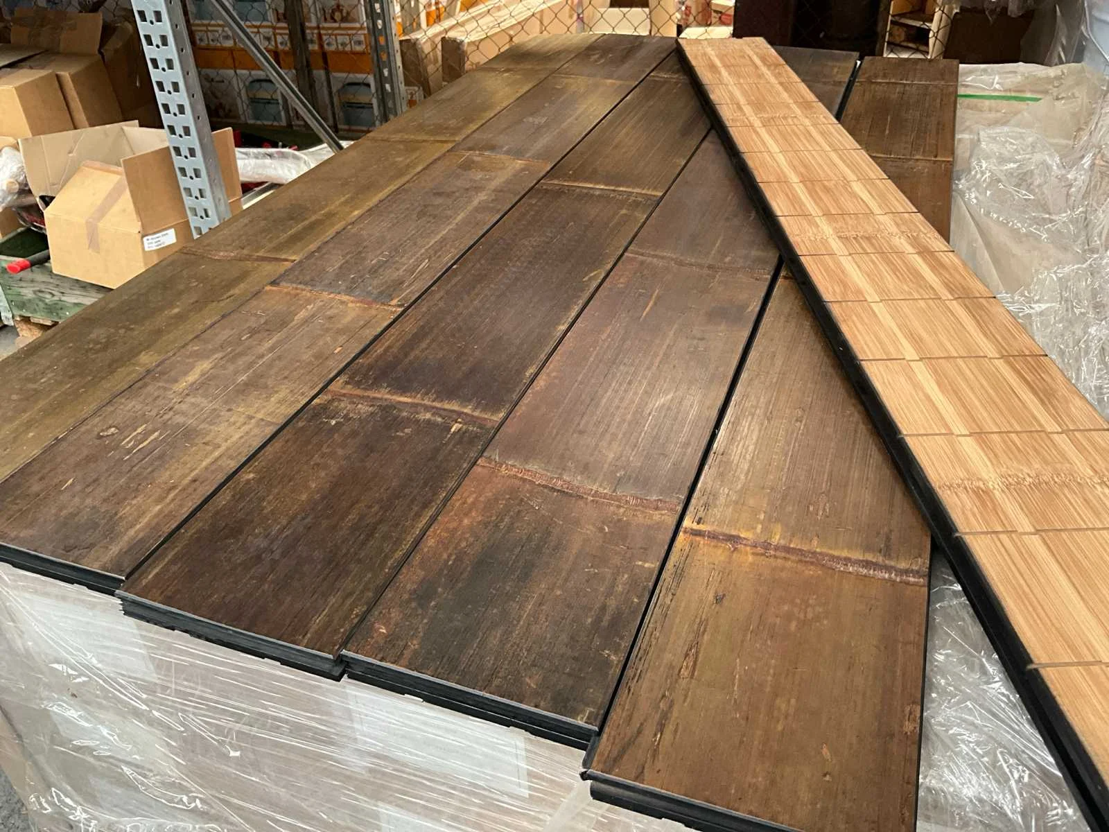 Producttype: Vloeren Categorie: Bamboe Vloeren Materiaal: 100% Bamboe Bamboesoort: Moso Kleur: Bruin Afmeting: 1210 mm x 125 mm x 18 mm 1 pak = 10 stuks / 1,5125 m2 Merk: Bamboo Model: Vloer forest Product type: 1210x125x18 mm (1,51 m2) Kleur: Zwartbuin / grijs Lengte: 121cm Materiaal: Bamboe