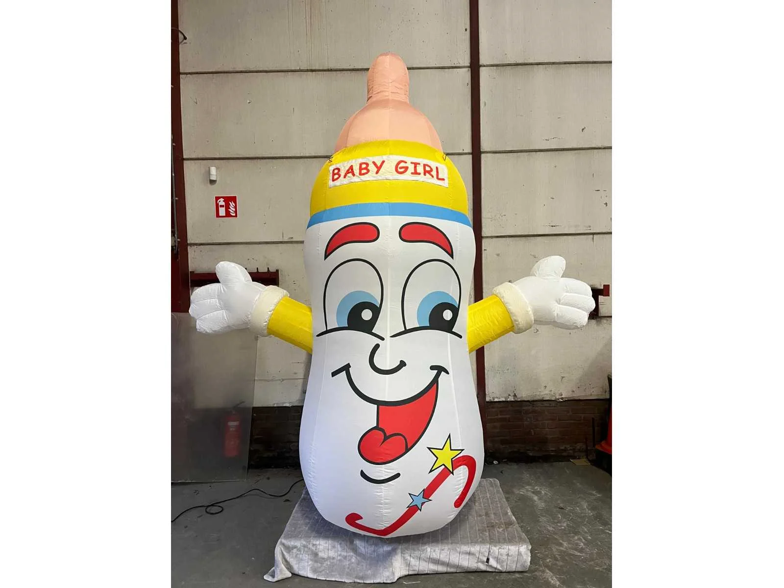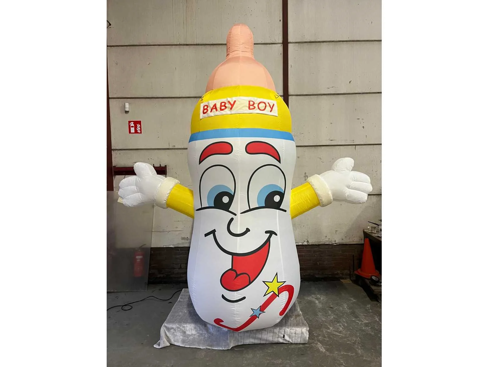 Beschrijving Deze opblaasbare Babyfles is zowel te gebruiken bij de geboorte van een jongen als bij een meisje daar de banner verwisselbaar is. nylon stof 3 meter hoog met ingebouwde blower inclusief transporttas, spanttouwen, haringen in haringzakje en banner “Baby Boy” en “Baby Girl”. Merk: HH Model: Opblaasbare babyfles Gewicht: 7 Hoogte: 3000 Materiaal: Nylon