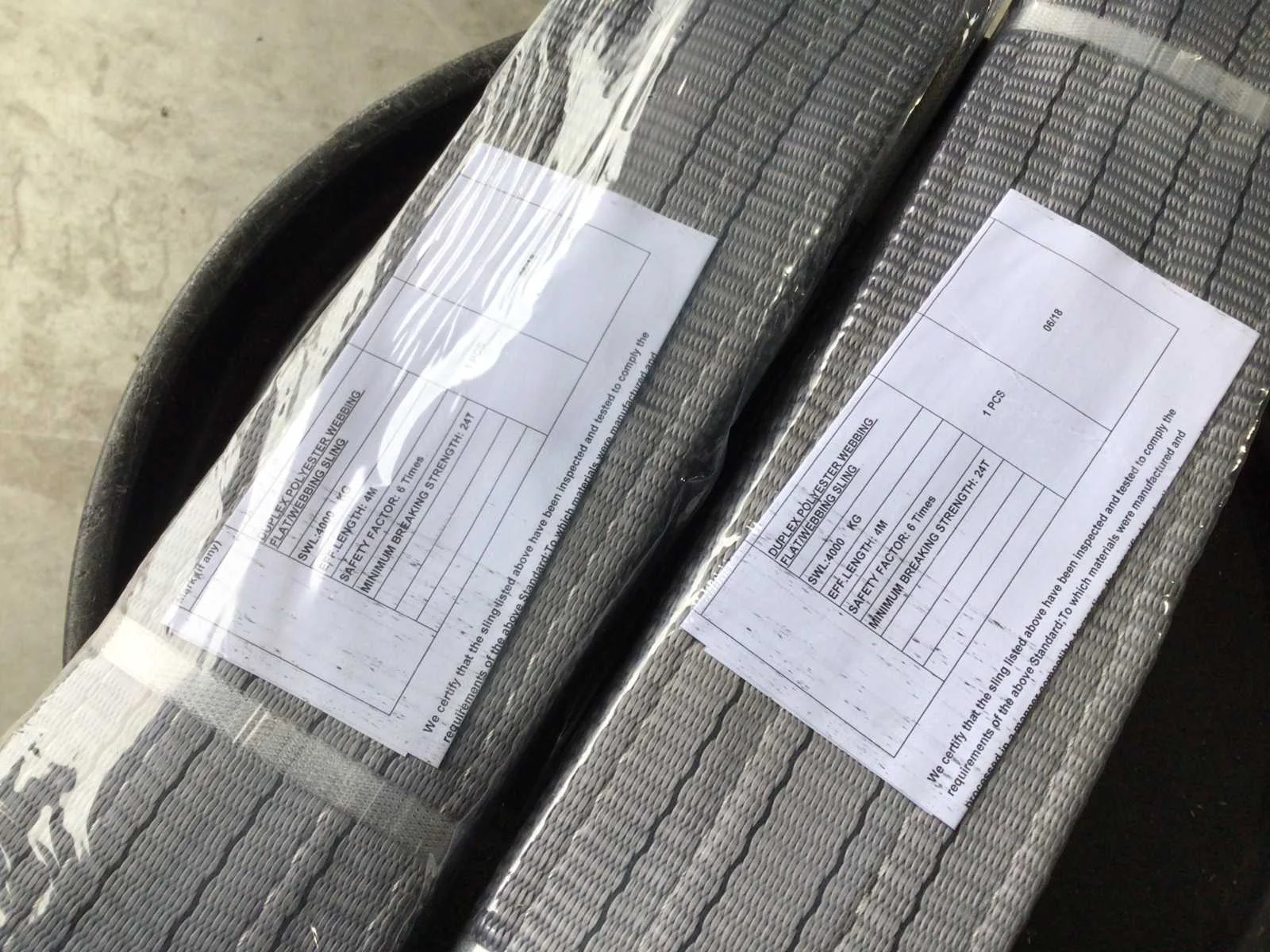 Hijsband ongebruikt; materiaal duplex polyester Grijs 4000 kg 2 stuks 4 meter; Merk: Easy going Type: Duplex - 4 ton - 4 meter Bouwjaar: 2025 Hijsvermogen: 4000kg Max. hefhoogte: 4m GS Code: 630790