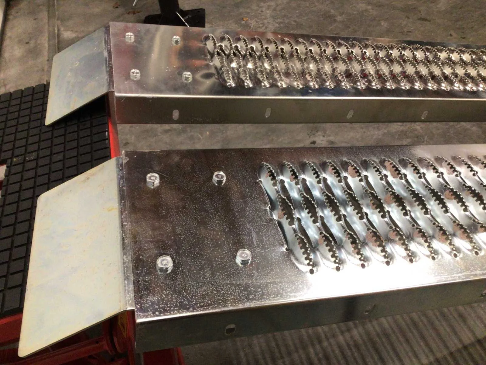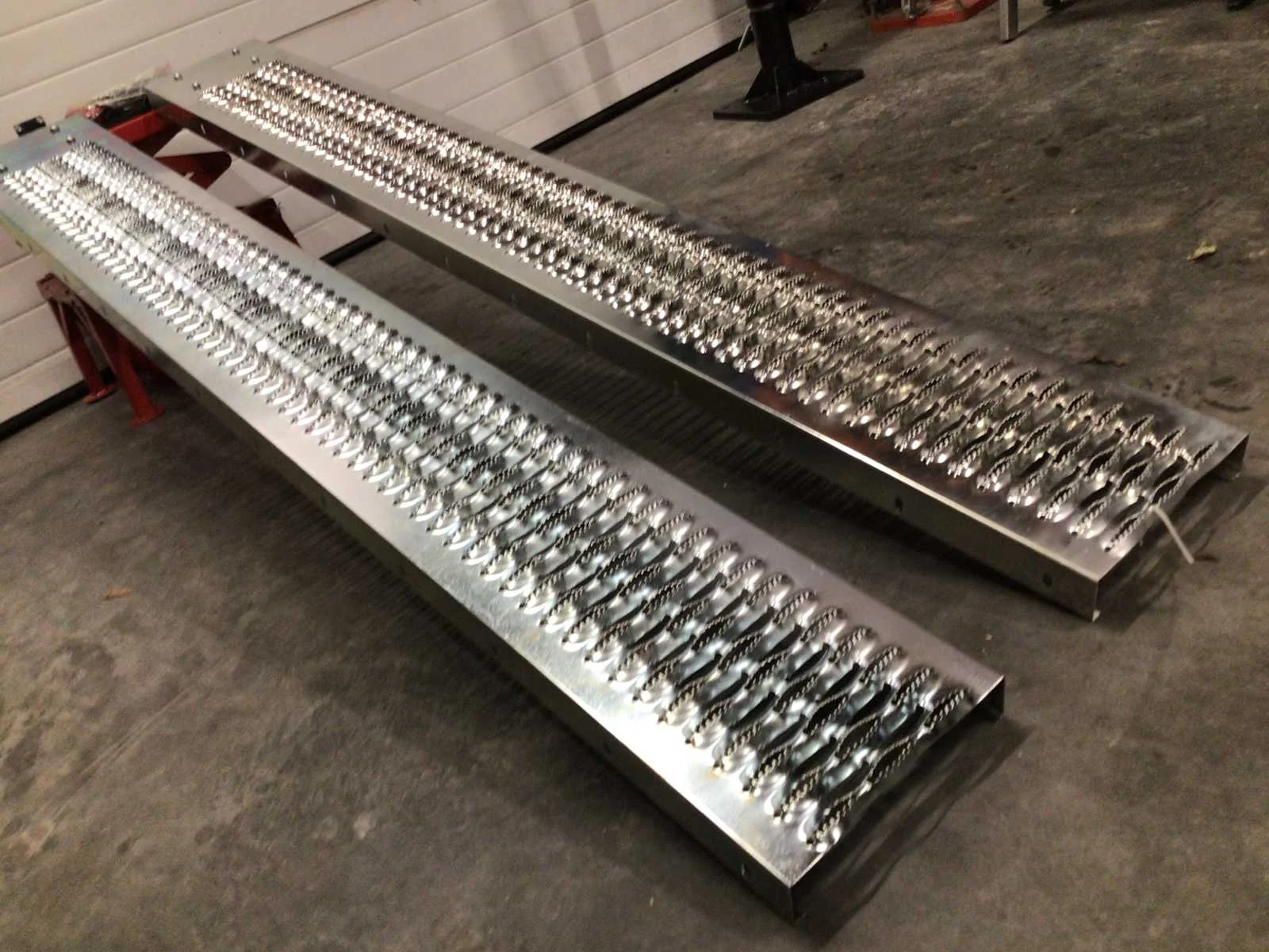 V.v. anti slipprofiel; max toelaatbaar gewicht 450 kilo per set; ongebruikt nieuw in doos. Merk: HH Model: Metalen oprijplank Gewicht: 10kg Lengte: 192cm Breedte: 230cm Hoogte: 5cm Materiaal: metaal