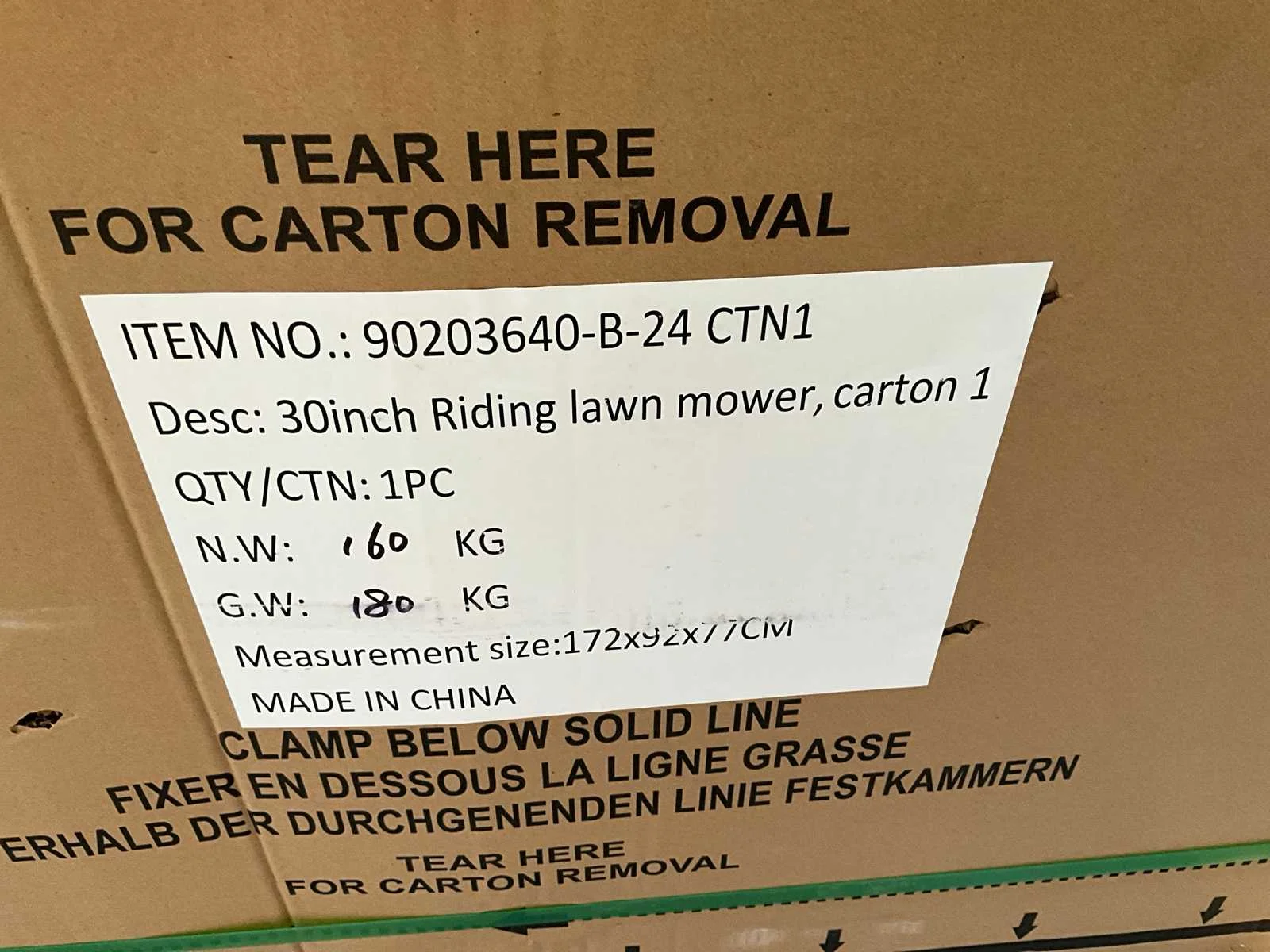 Ongebruikt nieuw in doos; Zitmaaier wordt geleverd in 2 dozen; zitmaaier met opvangbak, om te bouwen tot mulcher; handleiding aanwezig; Automatische Hydraulische Aandrijving; 432 CC benzine motor; 5 versnellingen vooruit; 1 achteruit; elektrische start; in hoogte verstelbaar maaidek met 6 standen; Merk: HH Type: 30 inch Bouwjaar: 2025 Werkbreedte: 850mm Zitmaaier: true Benzinemotor: true Brandstof: Benzine Opvang container: true Eigen gewicht: 180kg Totale afmeting L: 2000mm Totale afmeting Breedte: 900mm Totale afmeting Hoogte: 1100mm