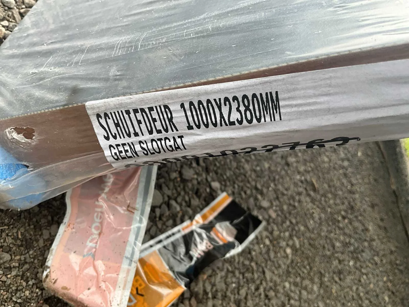 Ongebruikt; Svedex HPL-deur, schuifdeur, Stomp, Formica F2253MATTE Materiaal randafw. hz : roodhouten kantlat Materiaal randafw. sz : roodhouten kantlat Rooster geplaatst : Niet geplaatst Vulling : Volspaanplaat N1; geen slotgat Merk: Svedex HPL Binnendeur: true Stomp: true Afmeting h: 2380mm Afmeting b: 1000mm Totale afmeting lxbxh: 2380x1000x40 mmmm Type: Formica Hout: true Schuifdeur: true Dikte: 40mm