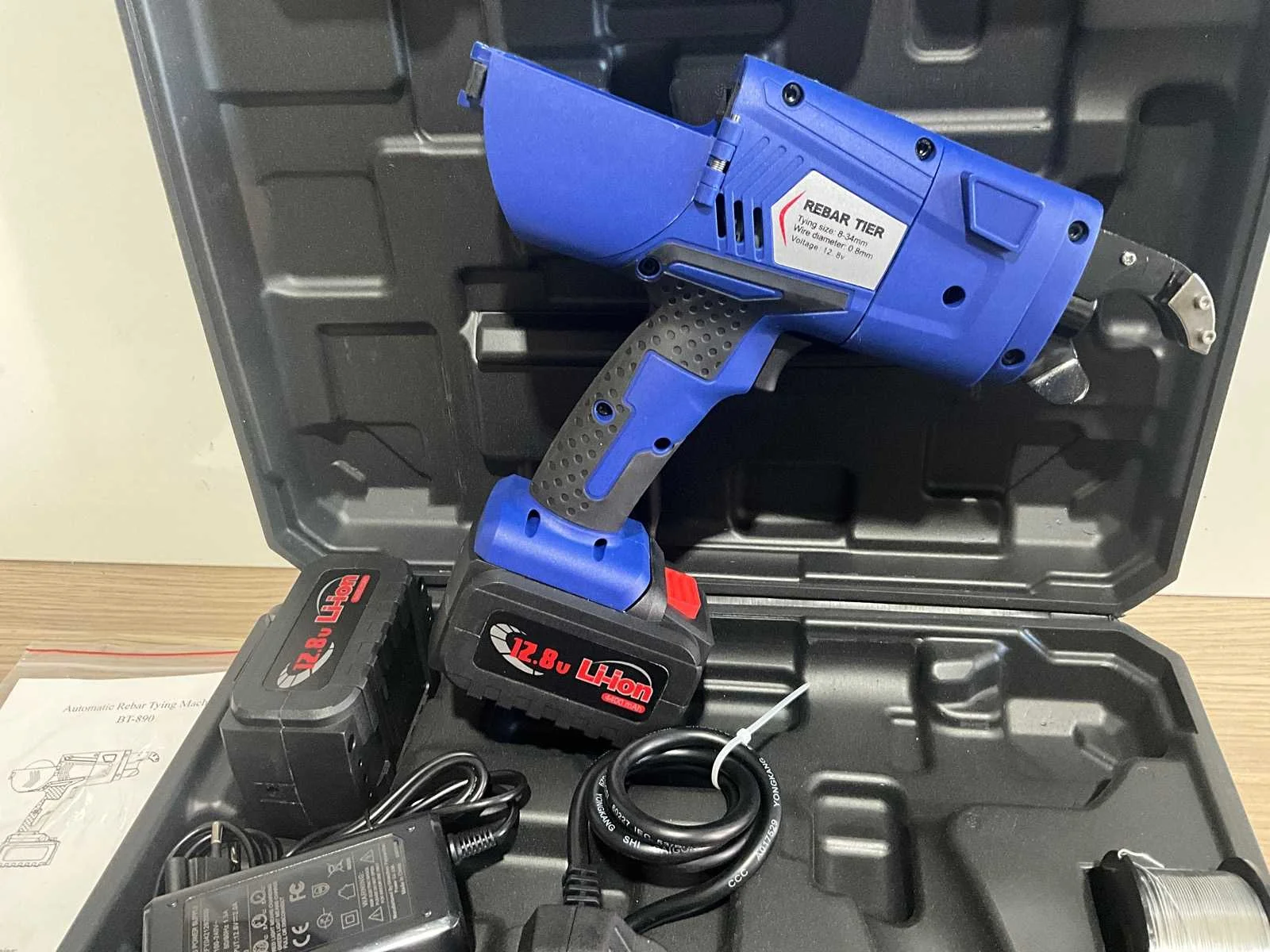 Ongebruikt nieuw in doos / koffer: Nominaal vermogen: 12,8 V Batterijtype: Lithium-ionbatterij Toepasselijk bereik van staalband: 8-34 mm Knoopdraadlengte: 300-500 mm Oplaadtijd batterij: 1,5 uur Batterijcapaciteit: 4400 mAh Batterijduur: 6 uur Gewicht: 3,5 kg Accessoires: batterij 2 stuks, oplader 1 stuks, ijzerdraadtang 1 stuks, draad spoel 1 stuks, inbussleutel 2 stuks, aansluitdraad 1 stuks; handleiding aanwezig Merk: Easy-Going Type: Automatic rebar Tying Bouwjaar: 2025 Model: BT-890 Kleur: Blauw / zwart Accu lader: true Materiaal: Kunststof metaal Met koffer: true Aantal accu's: 2