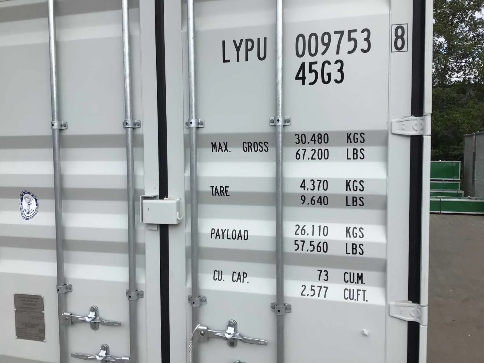 Zeecontainer / opslagcontainer; v.v. Twee open zijdeuren en één einddeur; slotkast; max laadvermogen 30,48 ton; geschikt voor export over zee; afhalen op afspraak; © ongebruikt; Deze kavel staat op ca. 20 km vanaf veiling locatie; serienummer kan afwijken Merk: LYPU Type: 40 ft HQ high cube Serienummer: LYPU Eigen gewicht: 4370kg Totale afmeting L: 12192mm Totale afmeting Breedte: 2438mm Totale afmeting Hoogte: 2896mm