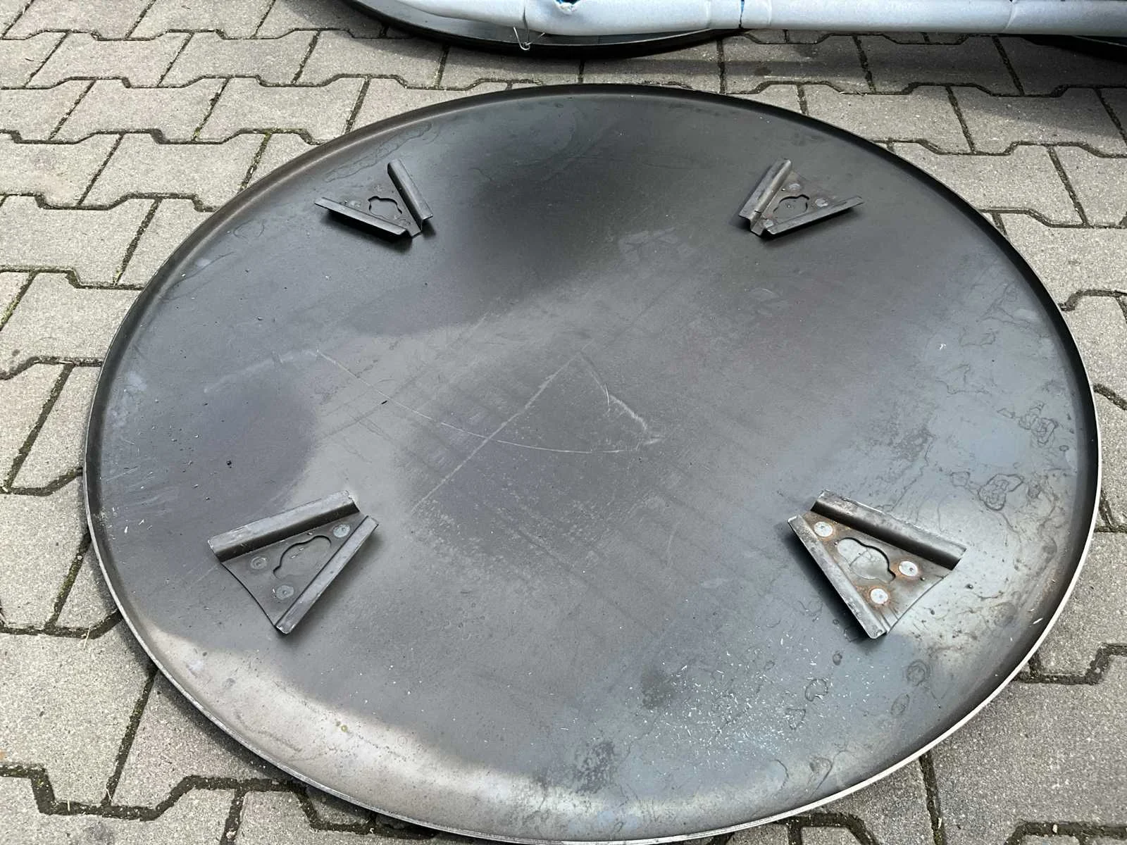 Betonnen mangaanstaal; troffelpan pan schijf; dikte 3 mm; 8 haken; diameter 960 mm; ongebruikt. (1 set = 2 stuks). Merk: Easy-Going Type: Mangaanstaal Bouwjaar: 2024 Afmeting l: 960mm Afmeting b: 960mm