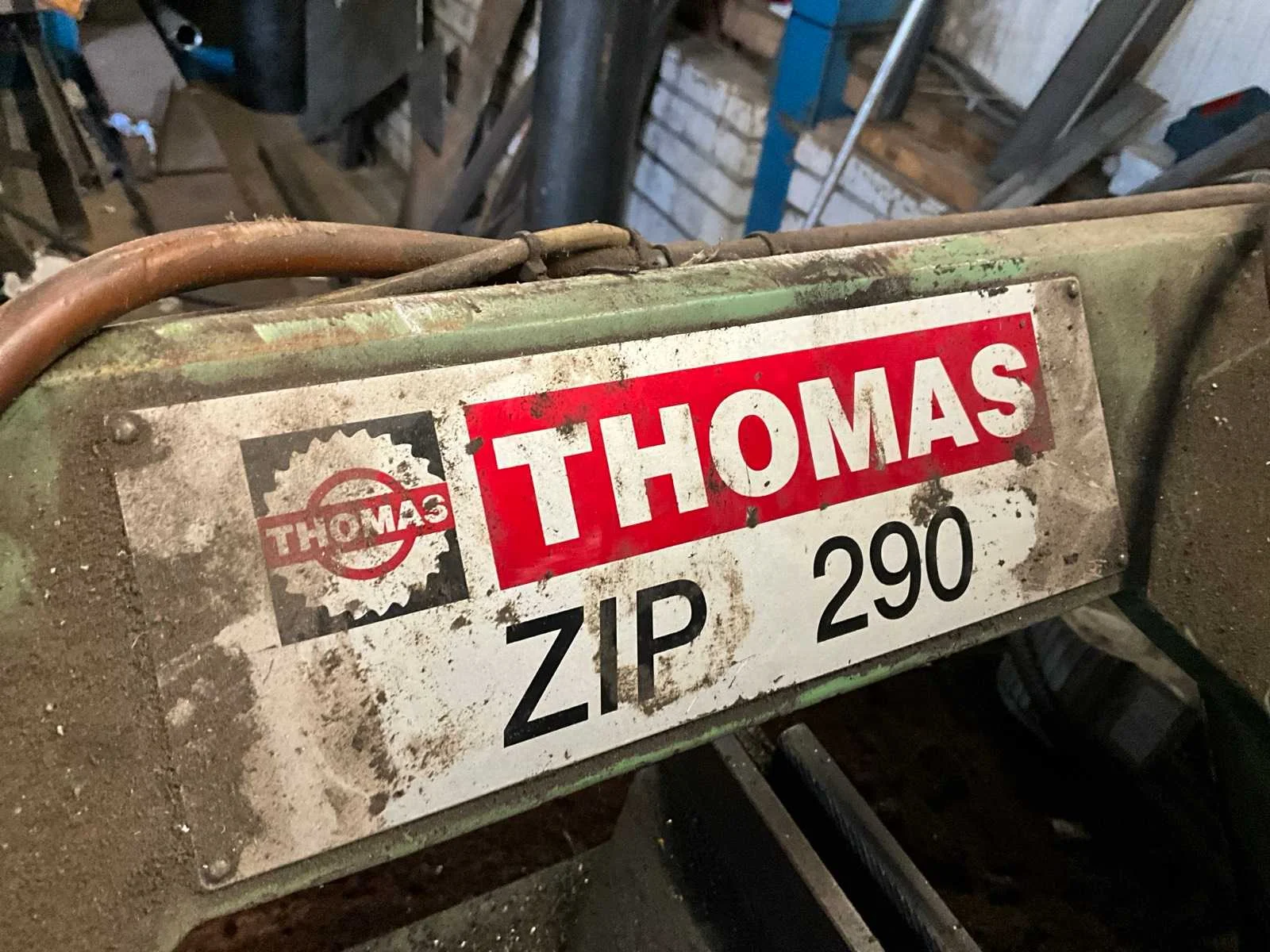 Met 3 nieuwe lintzaagbladen Merk: Thomas Type: Zip 290 Aansluiting: 380V Afmeting l: 1400mm Afmeting b: 900mm Afmeting h: 1500mm