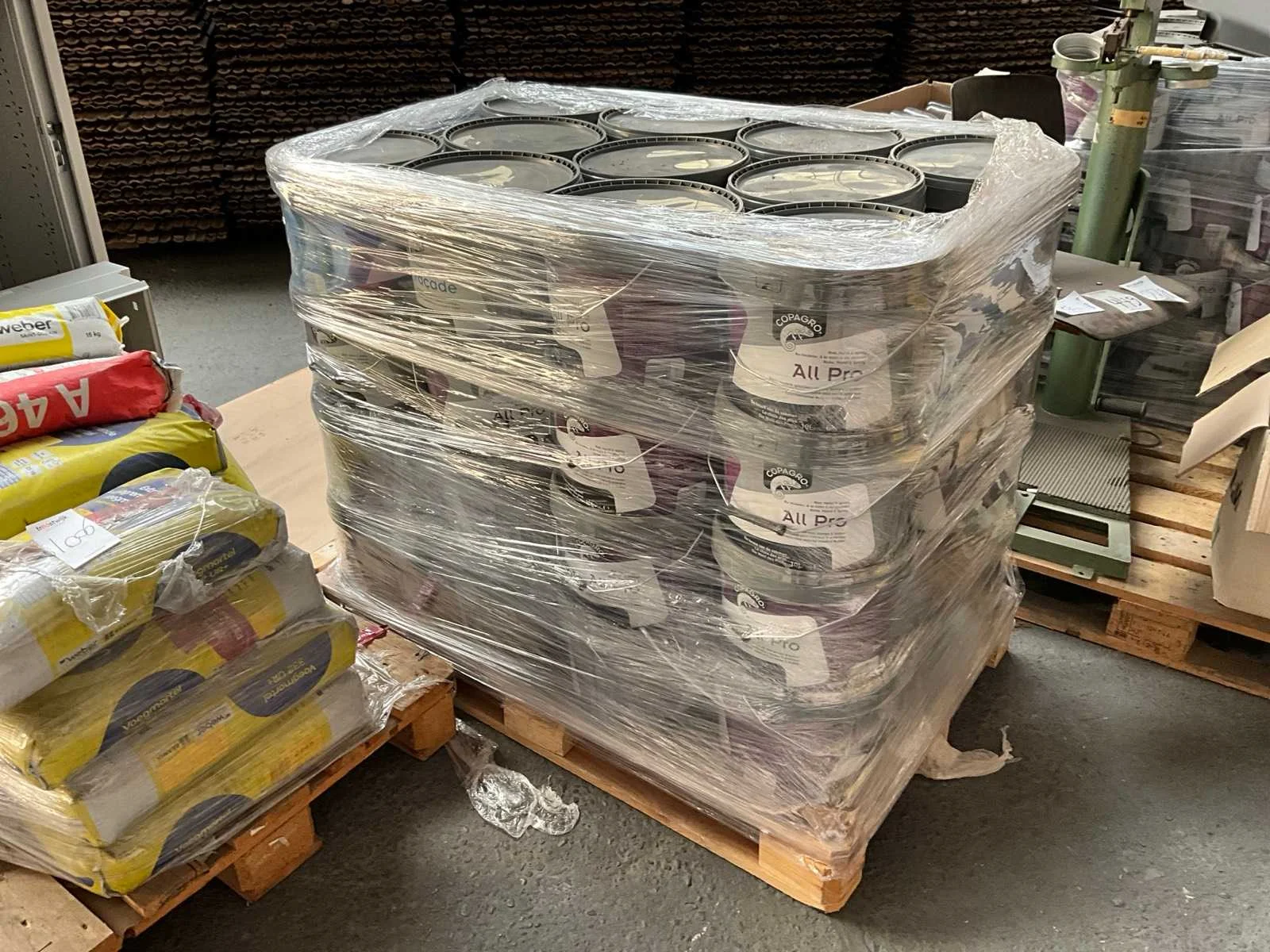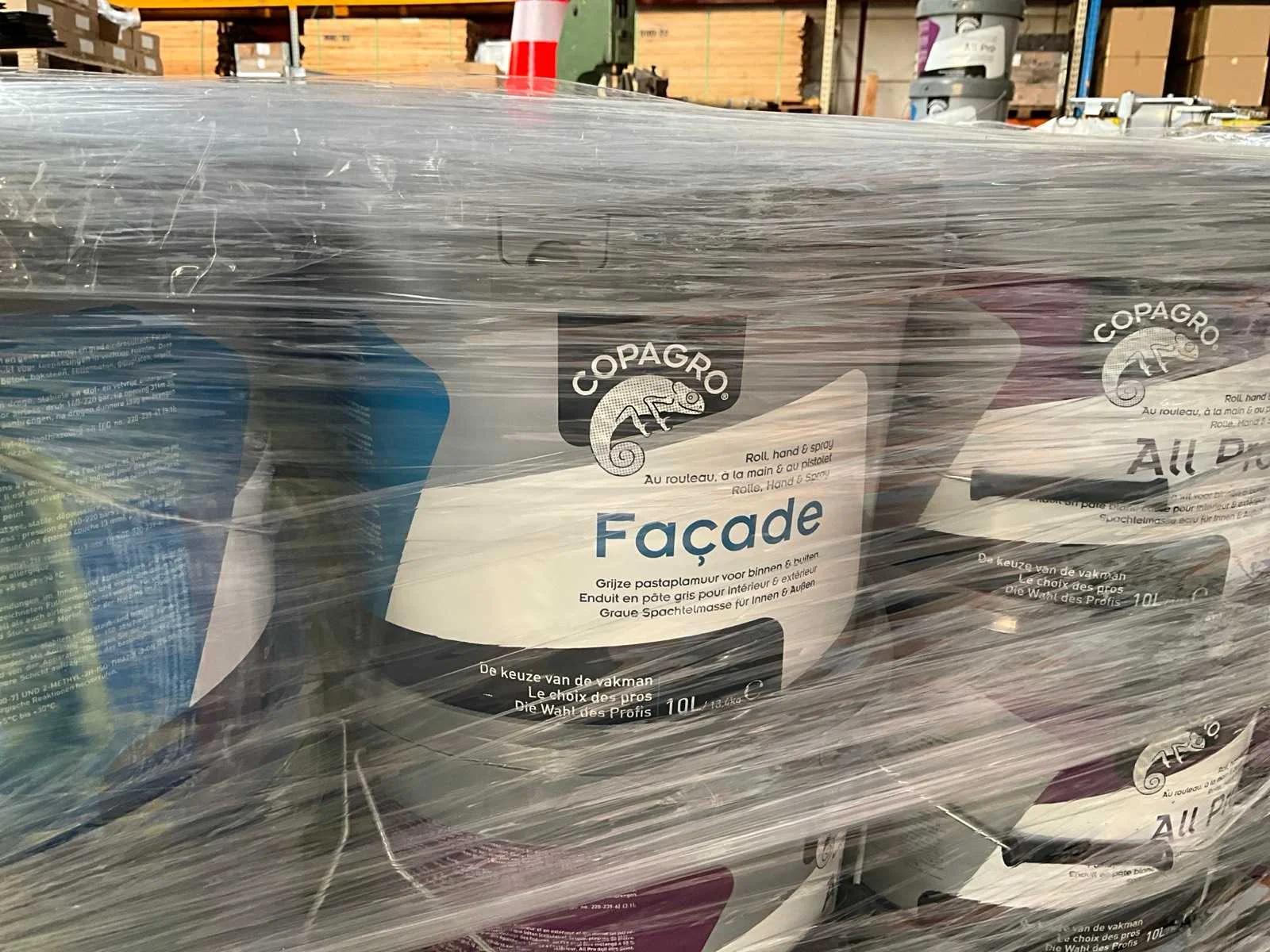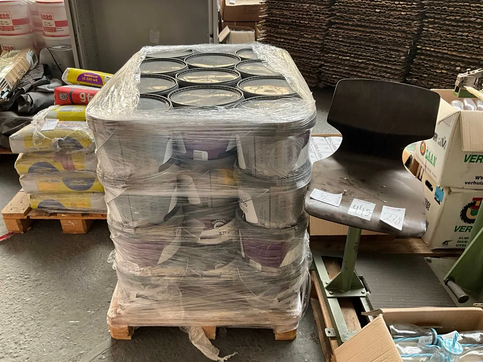 Circa 44 emmers a 10 liter; niet gecontroleerd op maten, aantallen & kleur; Diverse soorten, kleuren en maten verf; Merk: Copagro