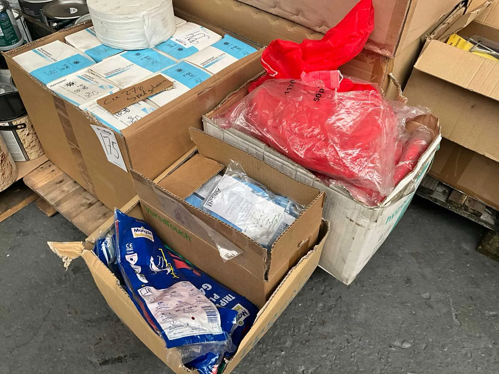 Onder andere handschoenen Pallet niet bij kavel inbegrepen;