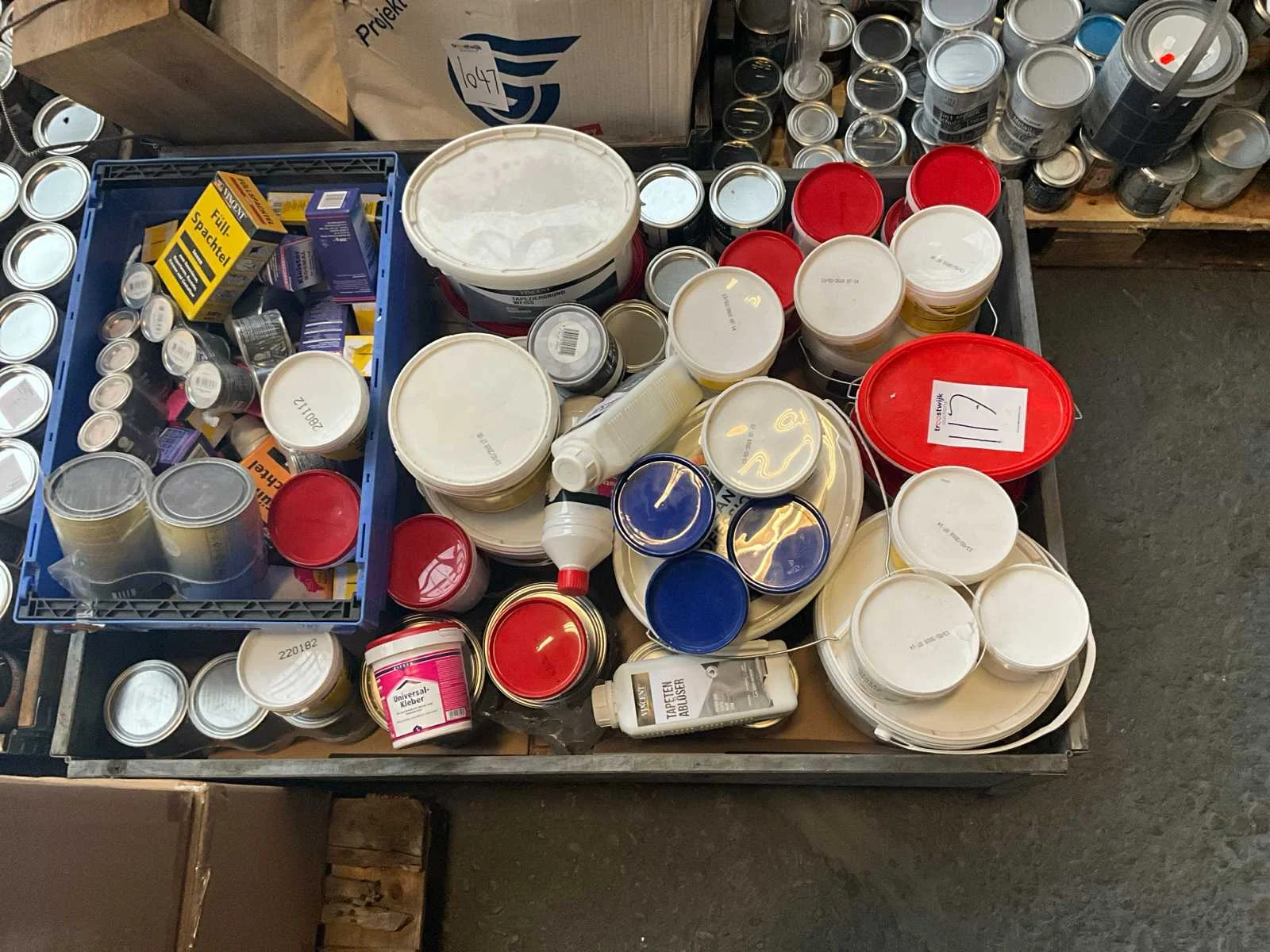 1 pallet , diverse kleuren verf; Pallet niet bij kavel inbegrepen; Aantal niet gecontroleerd ;