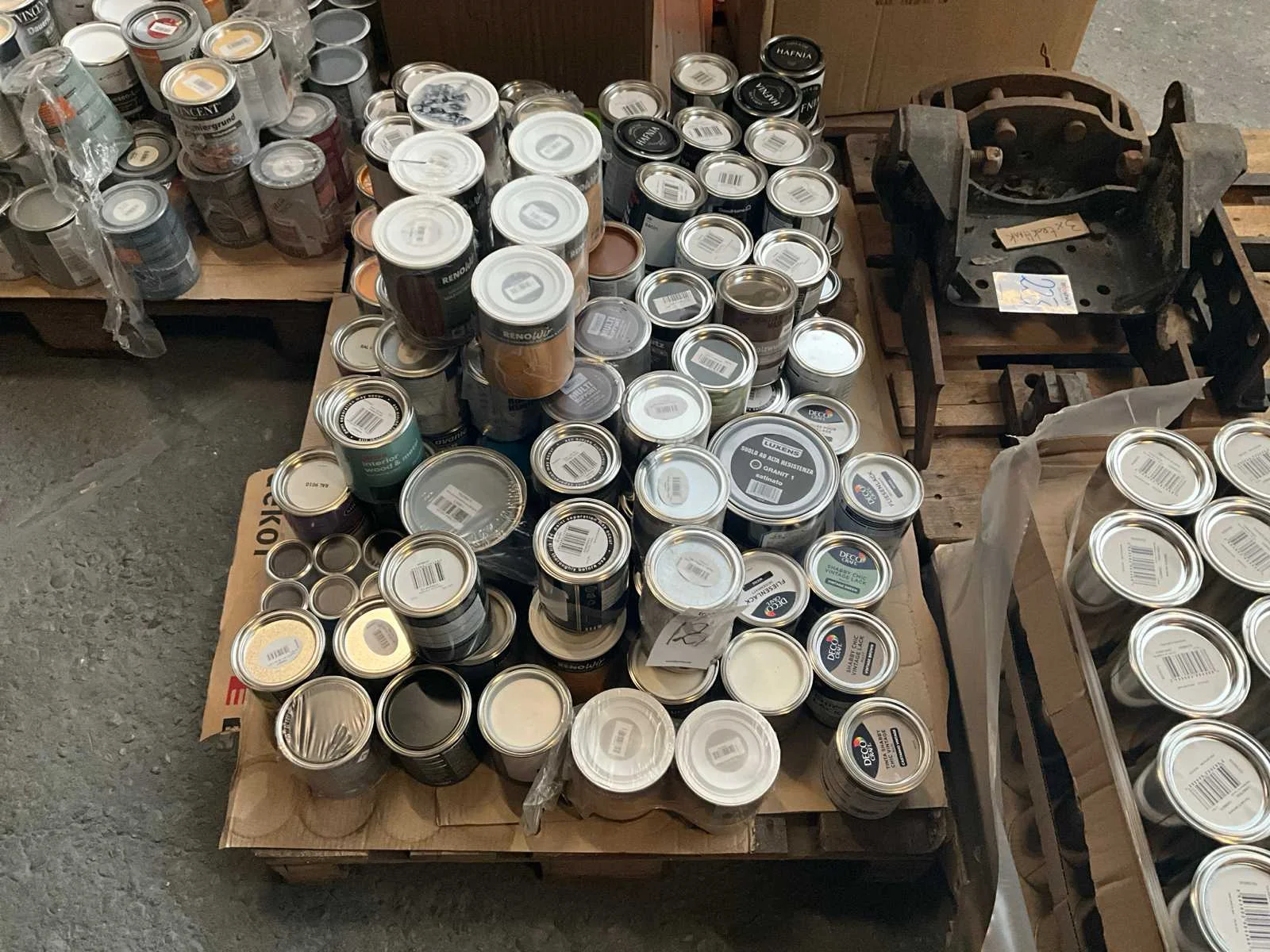 1 pallet , diverse kleuren verf; Pallet niet bij kavel inbegrepen; Aantal niet gecontroleerd ;