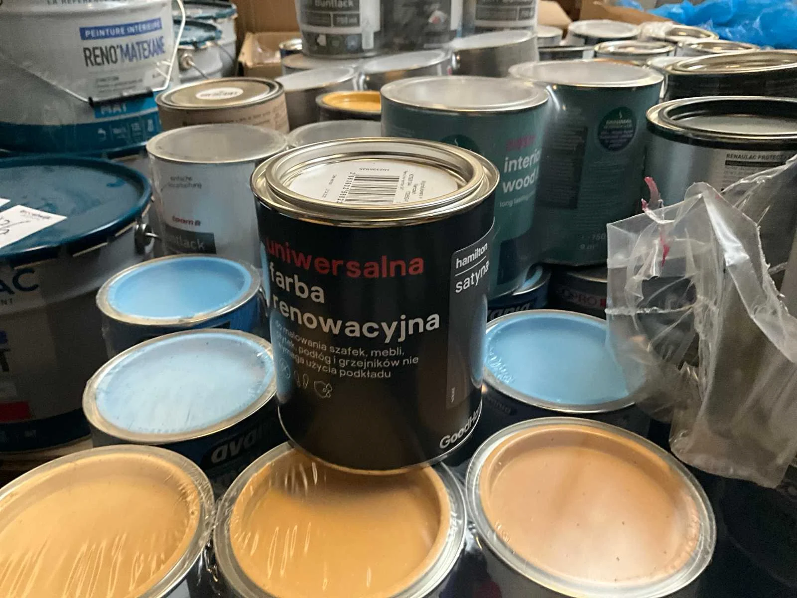1 pallet , diverse kleuren verf; Pallet niet bij kavel inbegrepen; Aantal niet gecontroleerd ;