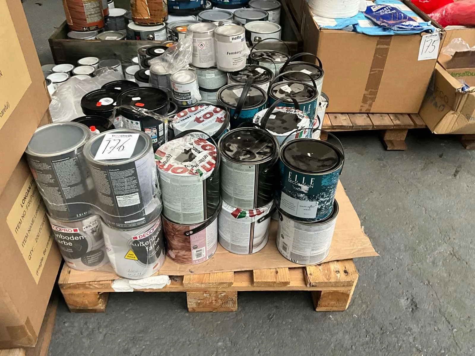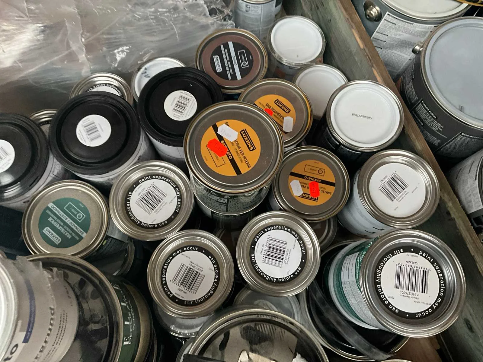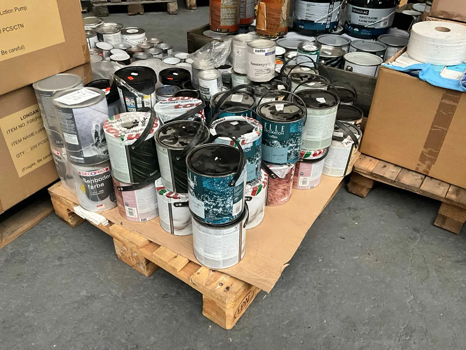 1 pallet , diverse kleuren verf; Pallet niet bij kavel inbegrepen; Aantal niet gecontroleerd ;