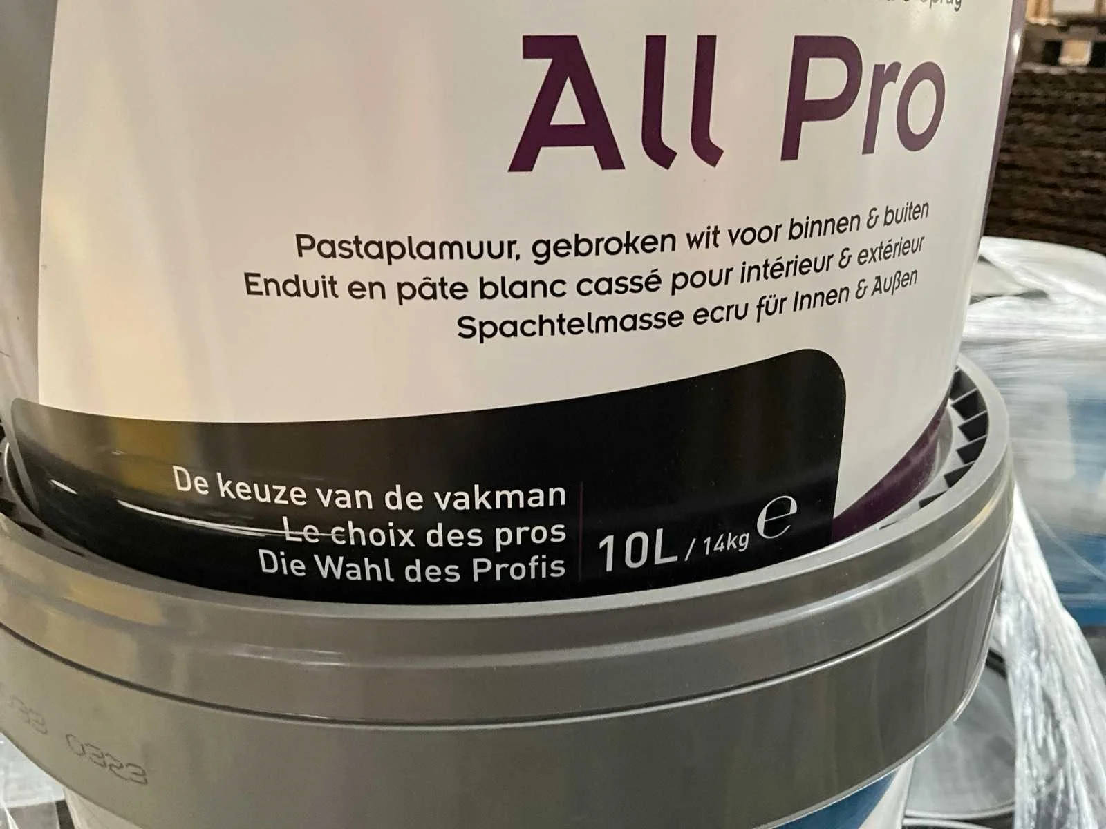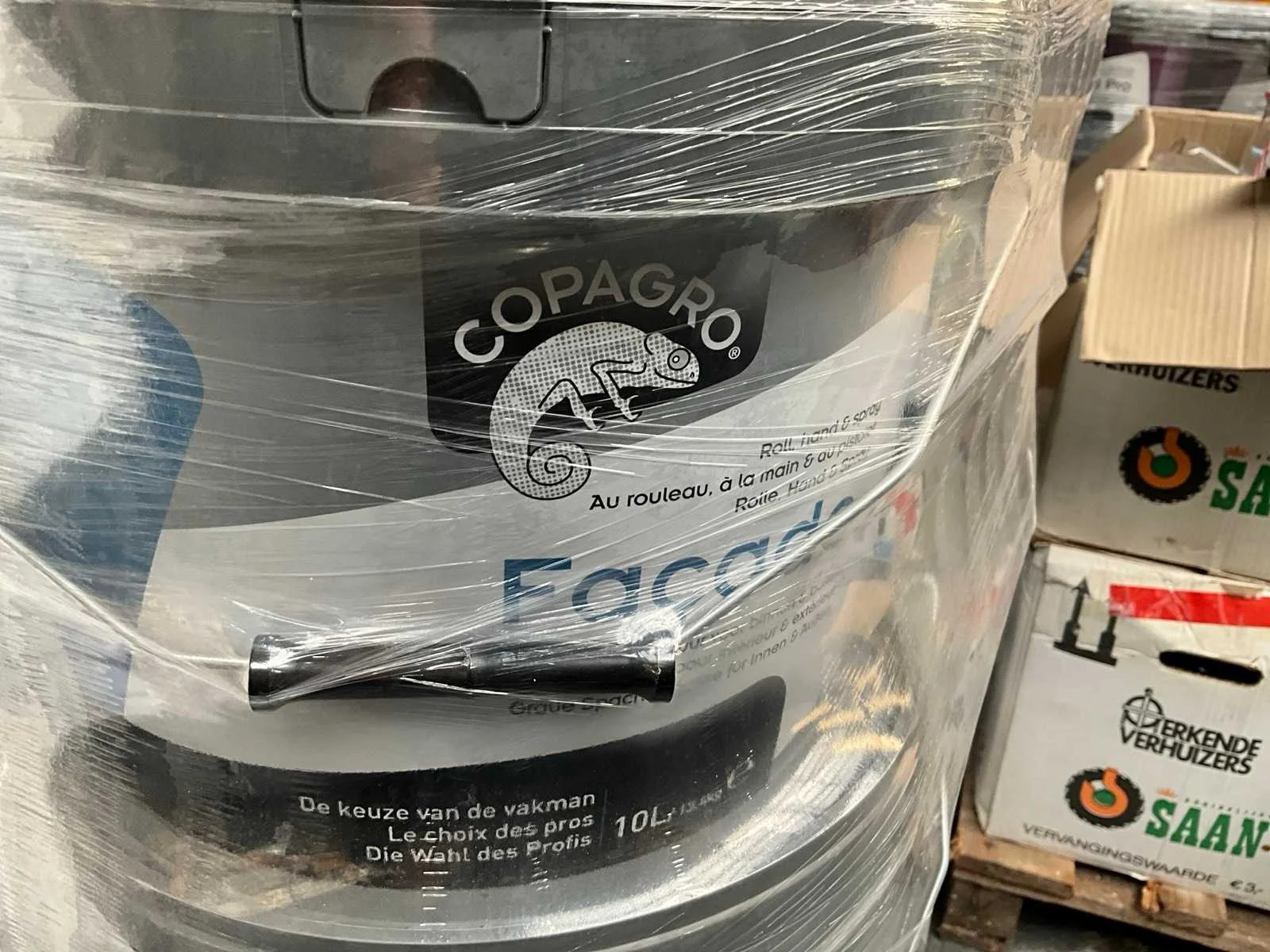 Circa 44 emmers a 10 liter; niet gecontroleerd op maten, aantallen & kleur; Diverse soorten, kleuren en maten verf; Merk: Copagro