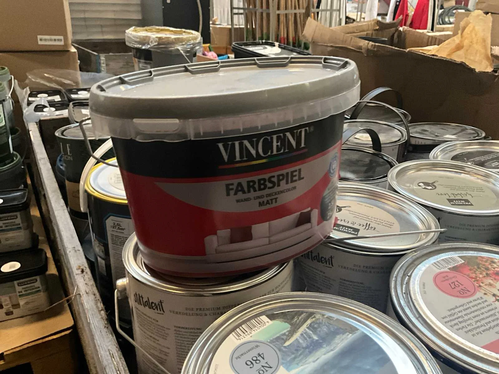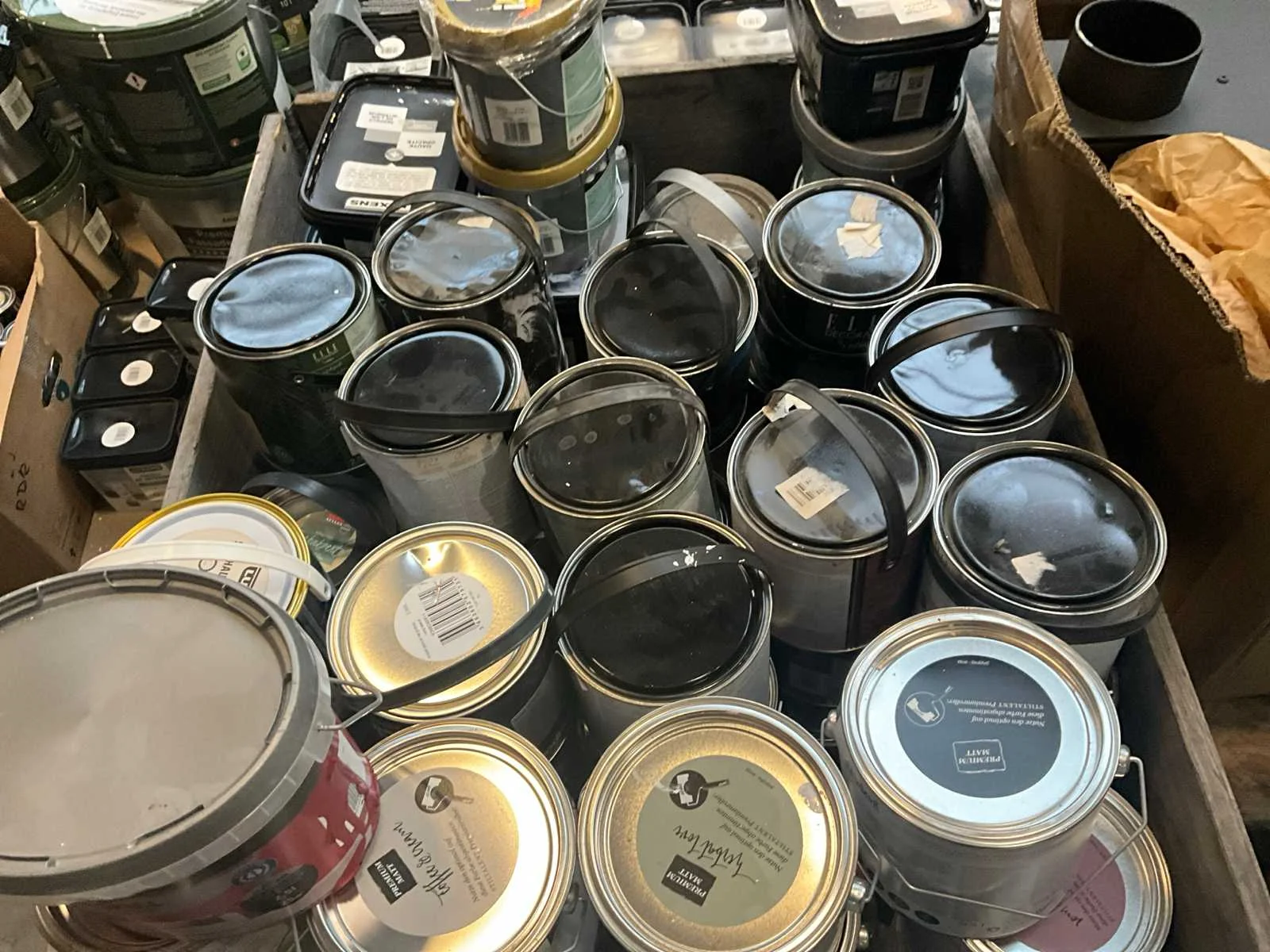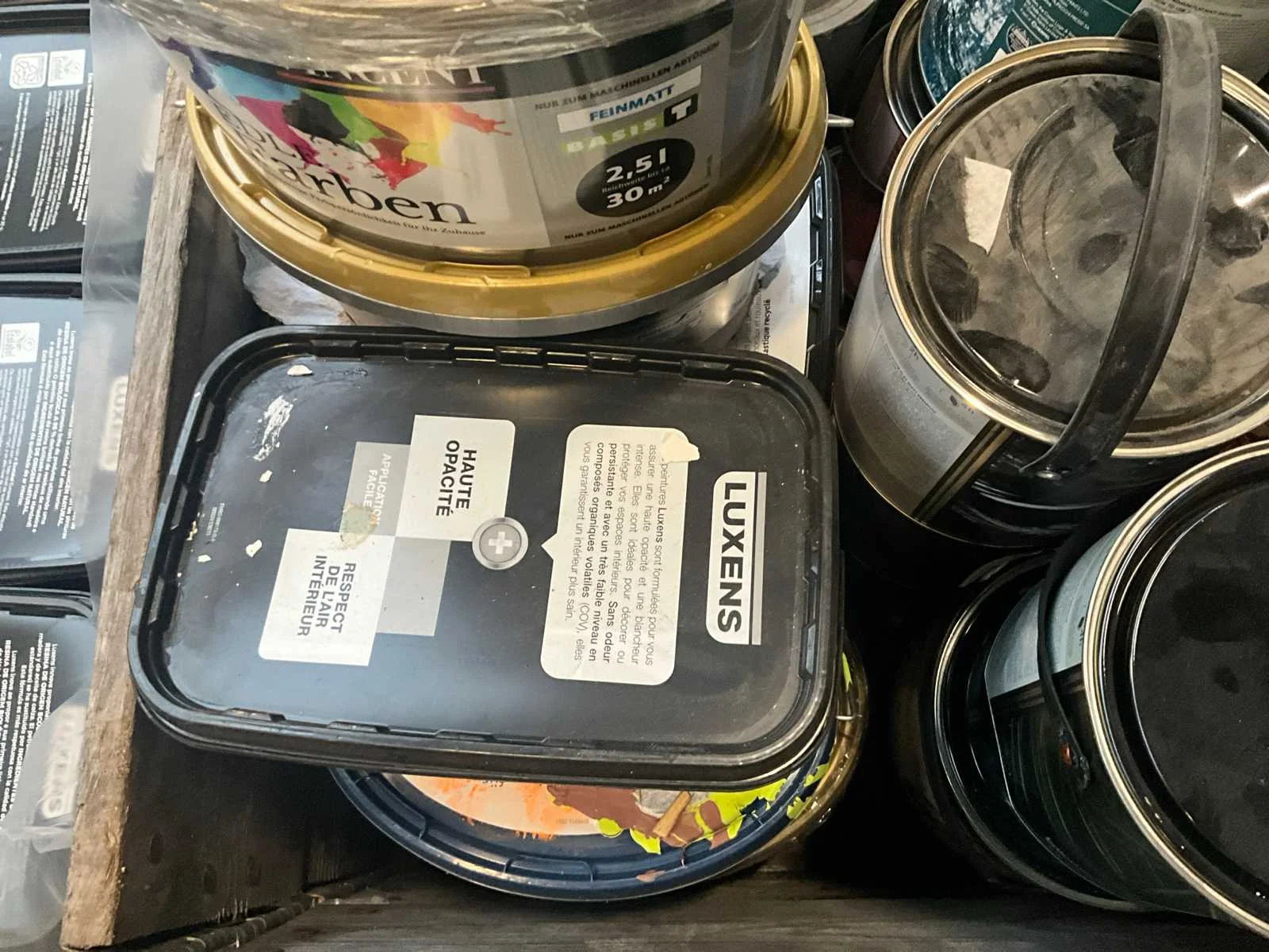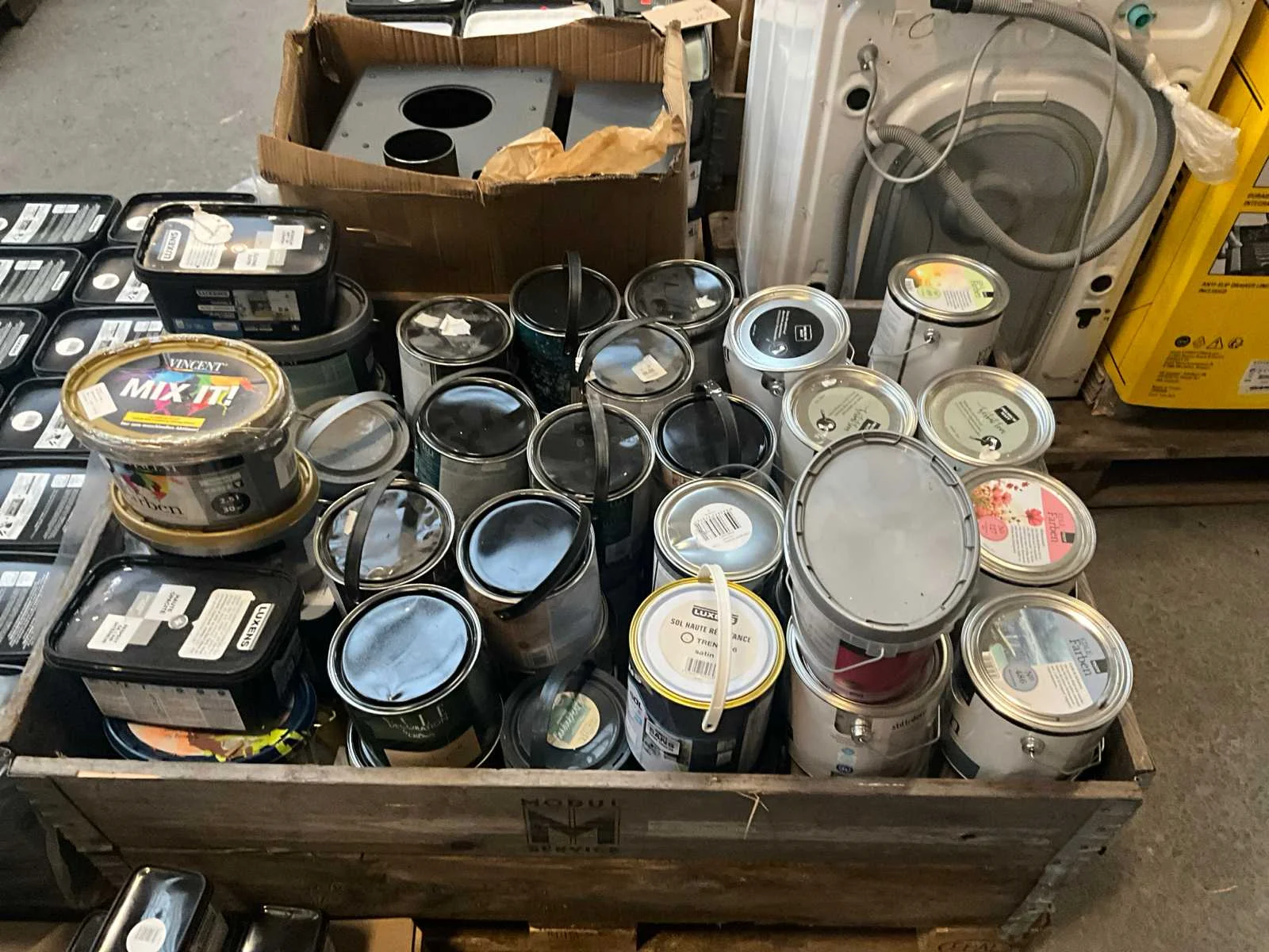 1 pallet , diverse kleuren verf; Pallet niet bij kavel inbegrepen; Aantal niet gecontroleerd ;