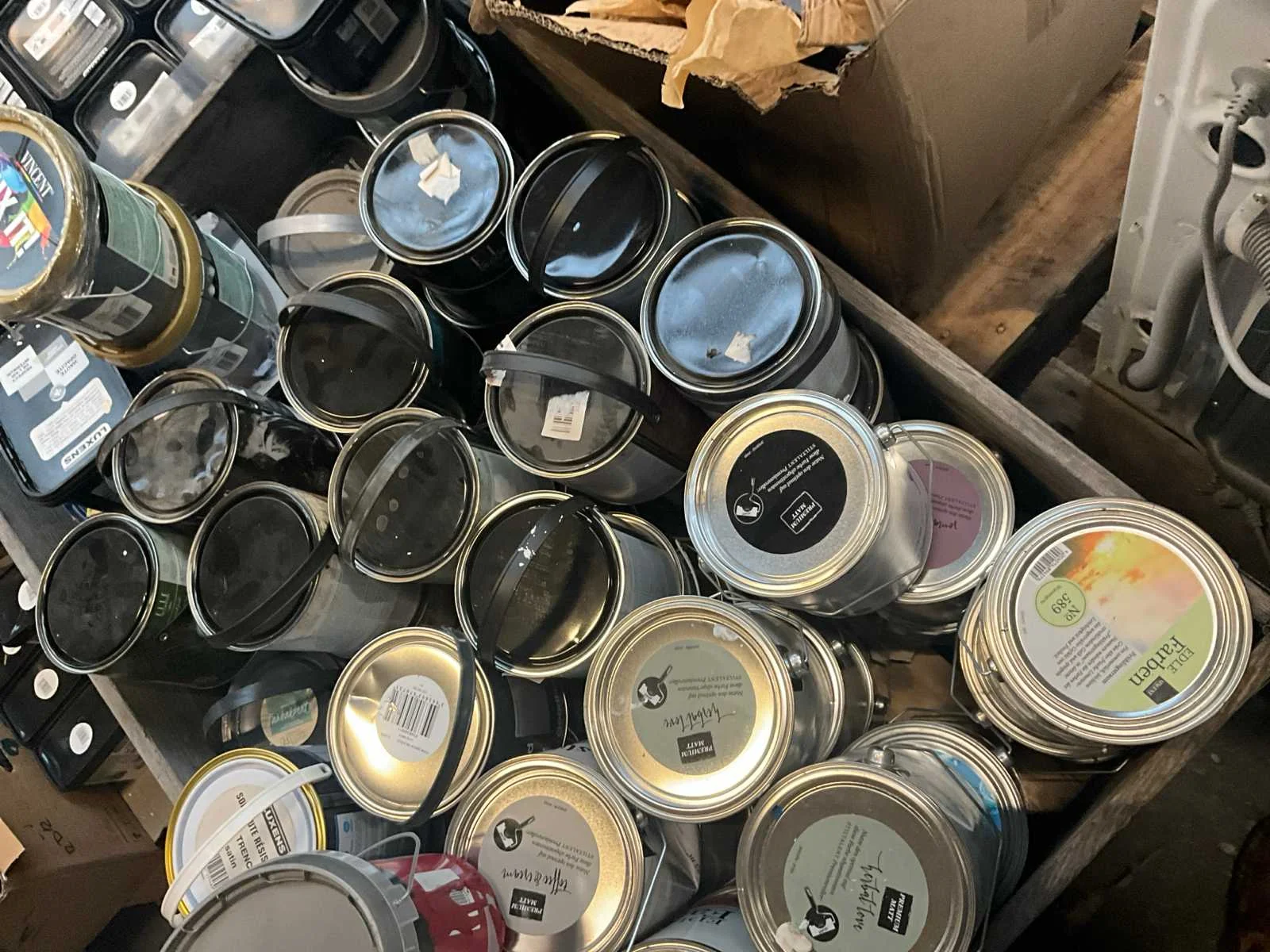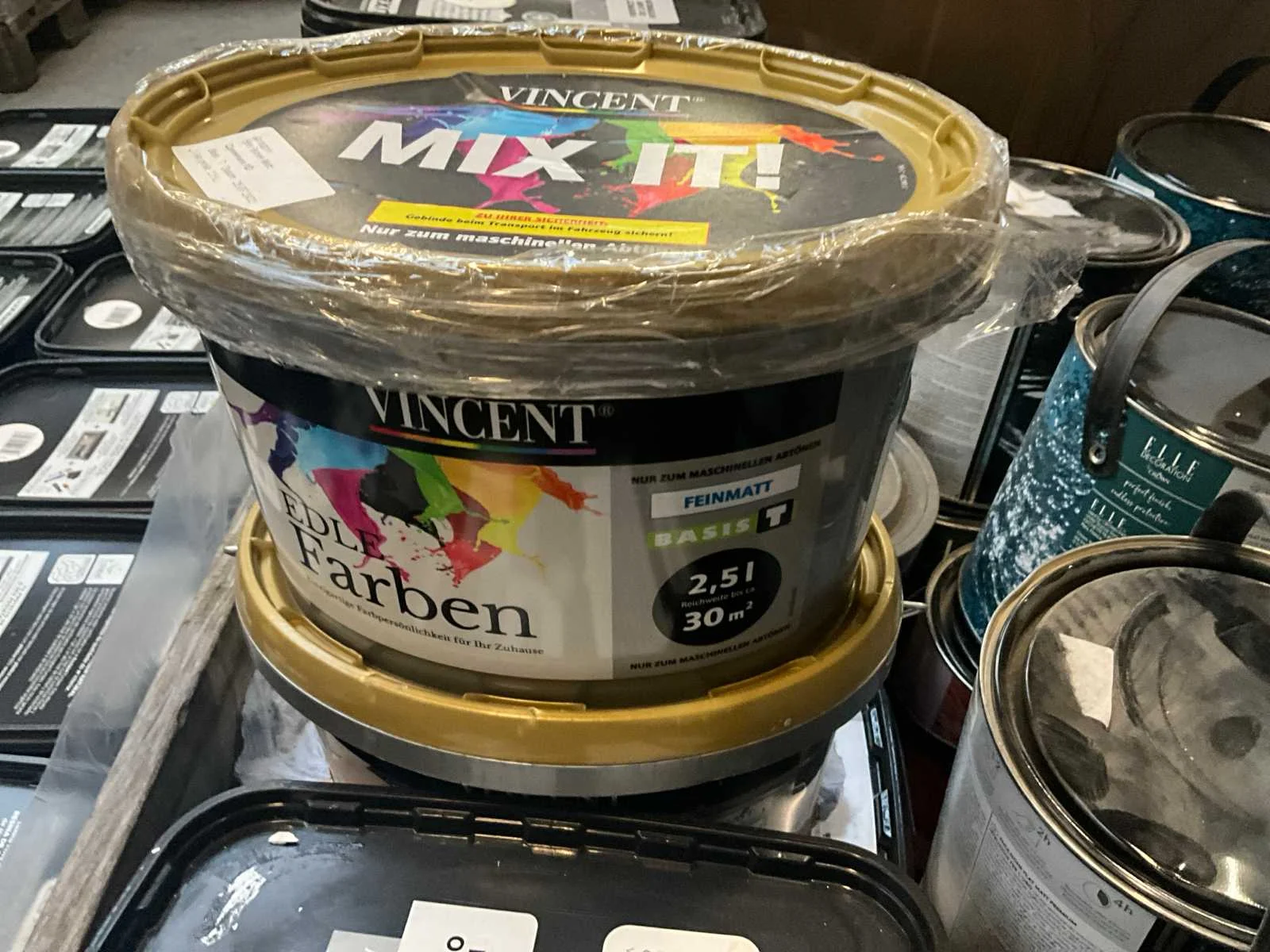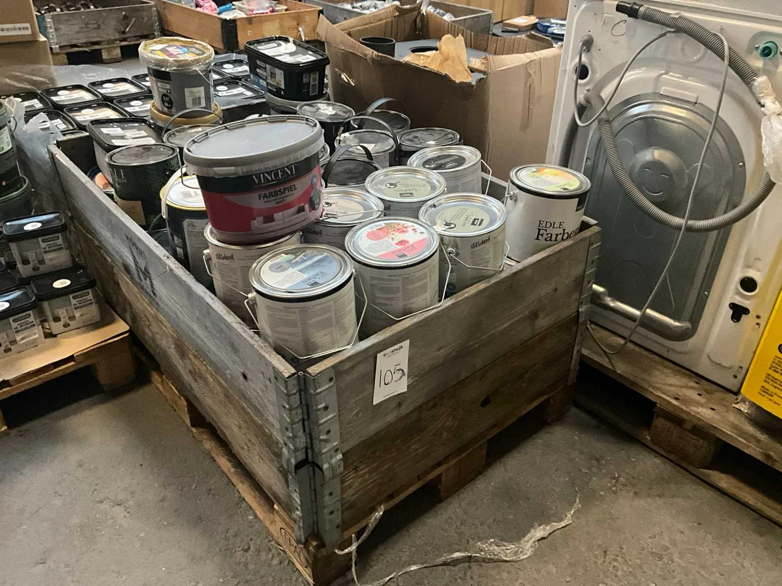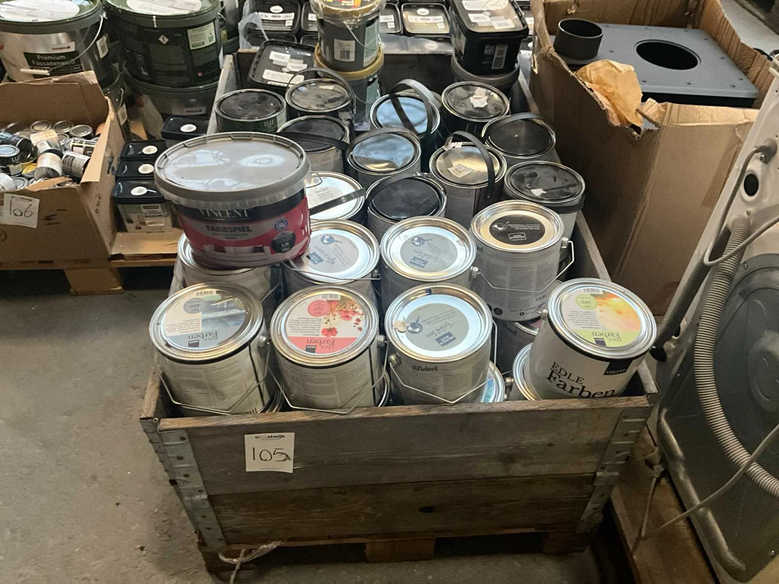 1 pallet , diverse kleuren verf; Pallet niet bij kavel inbegrepen; Aantal niet gecontroleerd ;