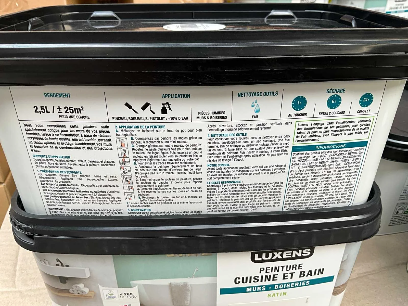 Ongeopend met seal; nieuw; circa 34 emmers a 2,5 liter; bekijk foto’s voor meer informatie Merk: Luxens Type: Cool 2