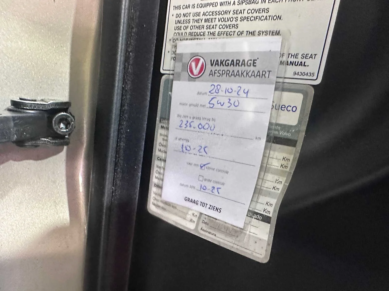 Kenteken: 58-LTF-4 Merk: Volvo Model: V70 Cross Country Type: 2.4 T Afgelezen kilometerstand: 221760km Cilinderinhoud: 2435cc Vermogen (kW): 147kW Chassisnummer: YV1SZ58K321069033 Laadvermogen: 0kg NAP status: Geen oordeel Datum eerste toelating: 2002-04-09 Datum eerste toelating (NL): 2010-10-22 APK vervaldatum: 2025-11-16 Vermogen (pk): 200hp Energielabel: D Aandrijving: AWD Aantal zitplaatsen: 5 Maximaal trekgewicht ongeremd: 750kg Maximaal trekgewicht geremd: 1800kg Kleur: beige Transmissie: Handgeschakeld Emissieklasse: 3 Aantal deuren: 4 Aantal sleutels: 1 Ledig gewicht: 1636kg Bruto BPM (NL): 1294€ Rest BPM: 0€ Aantal cilinders: 5 Carrosserie: stationwagen CO2-uitstoot NEDC: 251 Onderhoudshistorie: JA Carfax Link: https://was.carfax.eu/v0/api/ccdid/5100016408/svc/201/vinreg/58LTF4/checksum/eyJhbGciOiJIUzI1NiIsInR5cCI6IkpXVCJ9.eyJleHAiOjE3NjM5NjcyMzd9.eKg80EdhELP14jClWK-3yNjhbyh8uEFM3XYkfvmF_20
