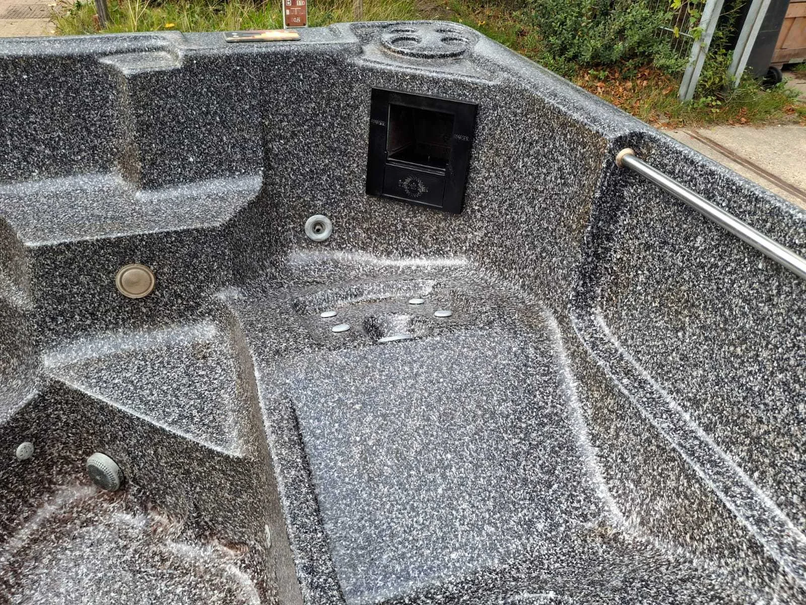 Voorzien van kunststof omkasting; nek/schouder massage; bekerhouder; automatisch filtersysteem; Niet getest op functioneren (Marge, geen BTW) Merk: Sunbelt Model: 5 persoons Verlichting: Ja Jets: 17 Aantal personen: 5 Lengte: 210cm Breedte: 210cm Hoogte: 97cm