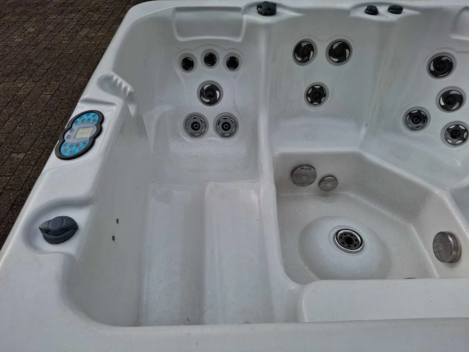 Voorzien van automatisch filtersysteem; kunststof omkasting; speakers; rvs massage jets; Niet getest op functioneren (Marge, geen BTW) Model: 4 persoons Verlichting: Ja Jets: 20 Aantal personen: 4 Lengte: 210cm Breedte: 210cm Hoogte: 88cm