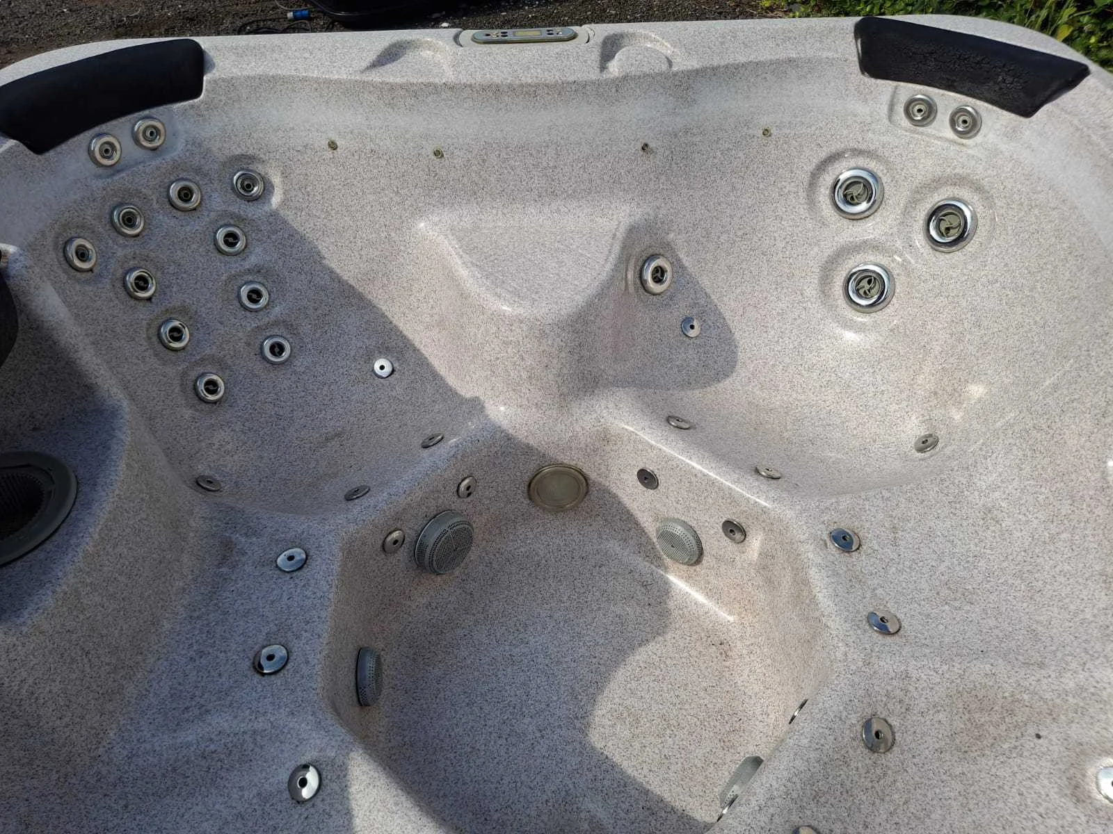 Voorzien van kunststof omkasting; automatisch filtersysteem; nek/schouder massage; RVS massage jets; waterval; Niet getest op functioneren (Marge, geen BTW) Model: 6 persoons Verlichting: Ja Jets: 35 Aantal personen: 6 Lengte: 210cm Breedte: 210cm Hoogte: 98cm