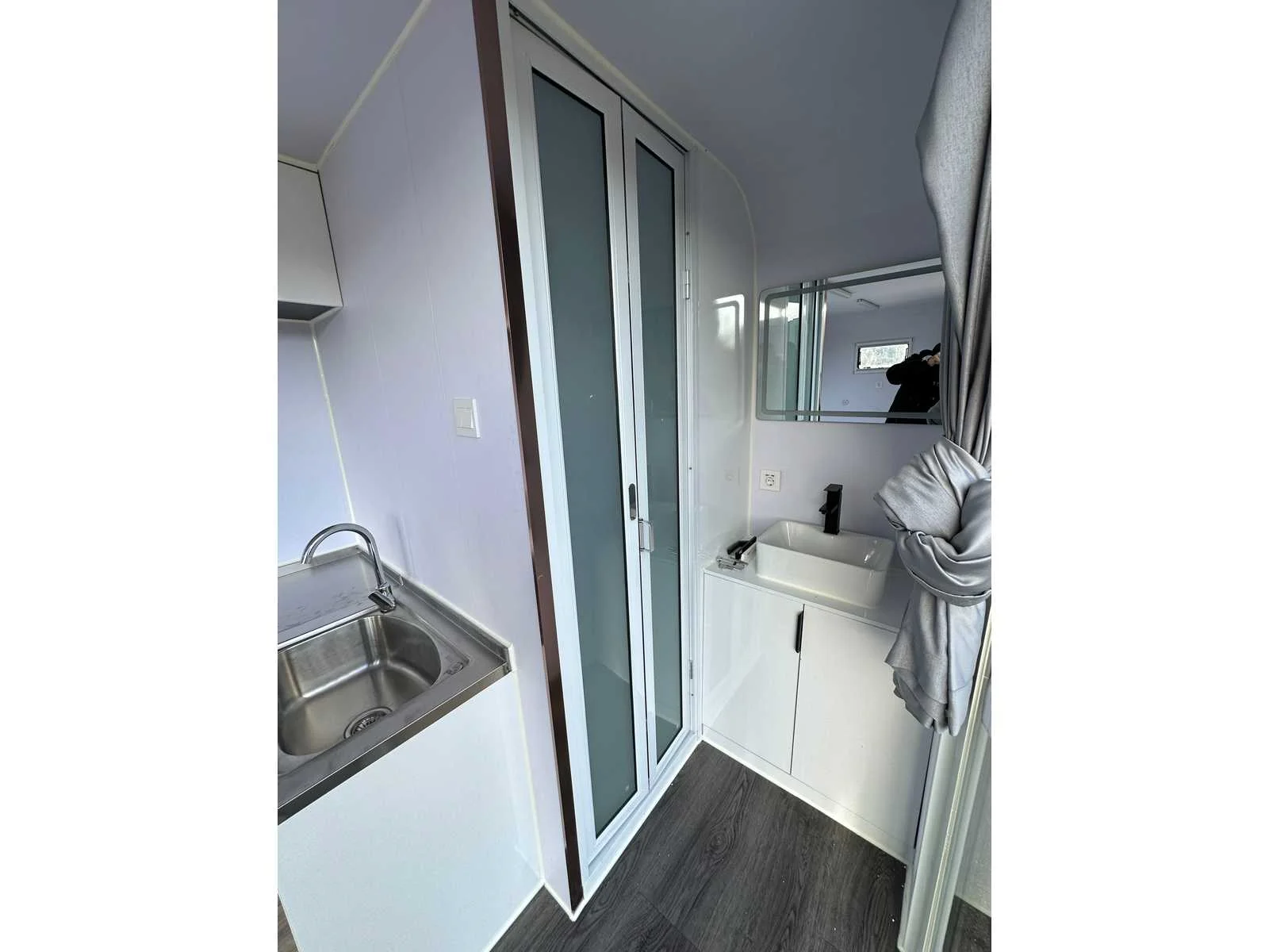 Geïsoleerde wanden en dak; aluminium kozijnen met dubbele zonwerende beglazing; afsluitbaar met sleutel en knopcilinder; uitzetraam; transportafmeting 5950x2300x2550 mm (lxbxh); hijsogen; frame onderzijde; voorzien van lepelgaten en stelpoten; ongebruikt Intern: sanitaire ruimte met douche; toilet; wastafel met mengkraan en onderkastjes en spiegel; ventilator; 220 volt wandcontactdozen met USB aansluiting; led plafondverlichting; 2 stuks uitzetramen met zonwering en horrengaas; gordijnen; hoekkeuken met boven kastjes; aardlekschakelaar kast- opbergruimte; Extern: Aansluitpunt 220 volt; aansluitpunt warm en koud water; rioolaansluiting; Externe materialen: Aluminium composiet paneel; wit fluorkoolstof enkelvoudig gecoat aluminium plaat; dubbellaagse lichtgewicht hoge druksterkte Interne materialen; Vlakke knoopplaat van hout-kunststof; ecologische plaat van EO-kwaliteit; ongebruikt Merk: Stahlworks Type: Eco 6000 B Wit Bouwjaar: 2025 Aantal ramen: 6 Toilet: true Eigen gewicht: 2070kg Totale afmeting L: 5950mm Totale afmeting Breedte: 2300mm Totale afmeting Hoogte: 2550mm