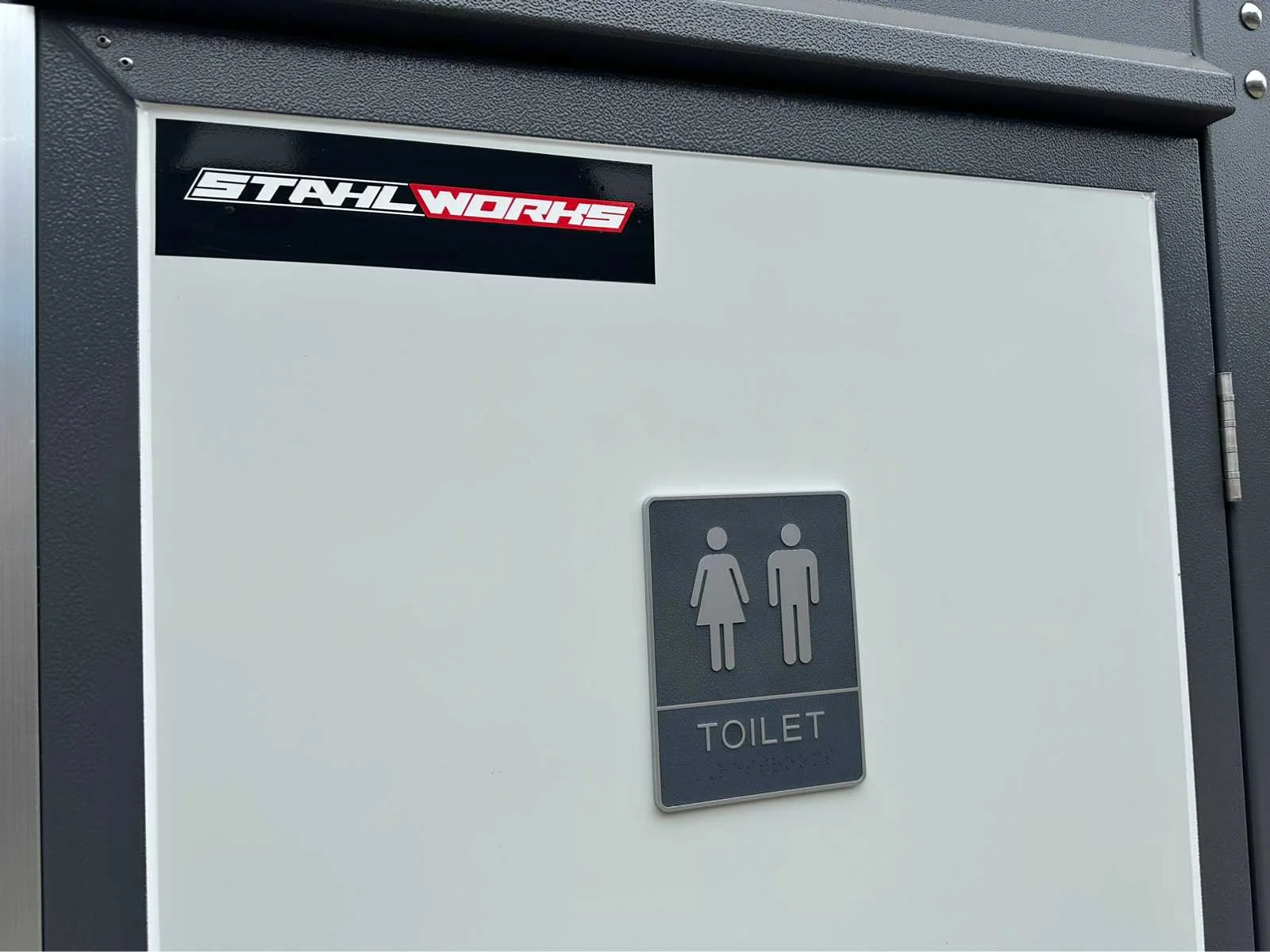 Voorzien van toilet; wastafel; wc borstel; toiletrolhouder; 220 Volt aansluiting; afsluitbaar met sleutel en knopcilinder; lepel gaten en hijsogen; ongebruikt Merk: Stahlworks Type: Single Bouwjaar: 2025 Aantal toiletten: 1 Aantal wastafels: 1 Eigen gewicht: 270kg Totale afmeting L: 1310mm Totale afmeting Breedte: 1100mm Totale afmeting Hoogte: 2360mm