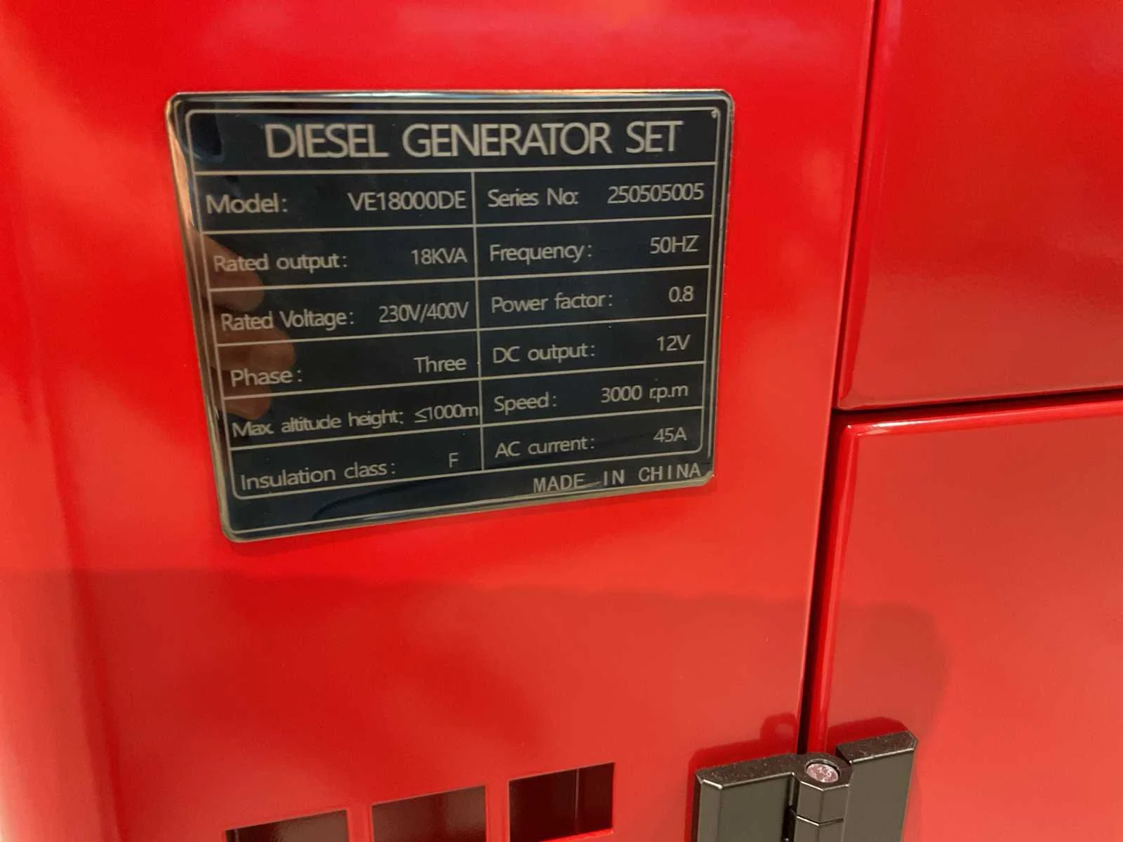 Voorzien van diverse toebehoren; Capaciteit.: 18kVA; Diesel motor; Lucht gekoeld; 400/230v; 3000rpm; Verbruik van 3l/u; Electrische start; Voorzien van zwenk wielen; Machinegewicht: 310kg Totale afmeting 1250x670x880 (lxbxh); Ongebruikt in doos Merk: Rhino-cross Type: VE18000DE Bouwjaar: 2025 Capaciteit.: 18kVA Diesel: true Luchtgekoeld: true Mobiel: true Machinegewicht: 310kg Totale afmeting L: 1250mm Totale afmeting Breedte: 670mm Totale afmeting Hoogte: 900mm