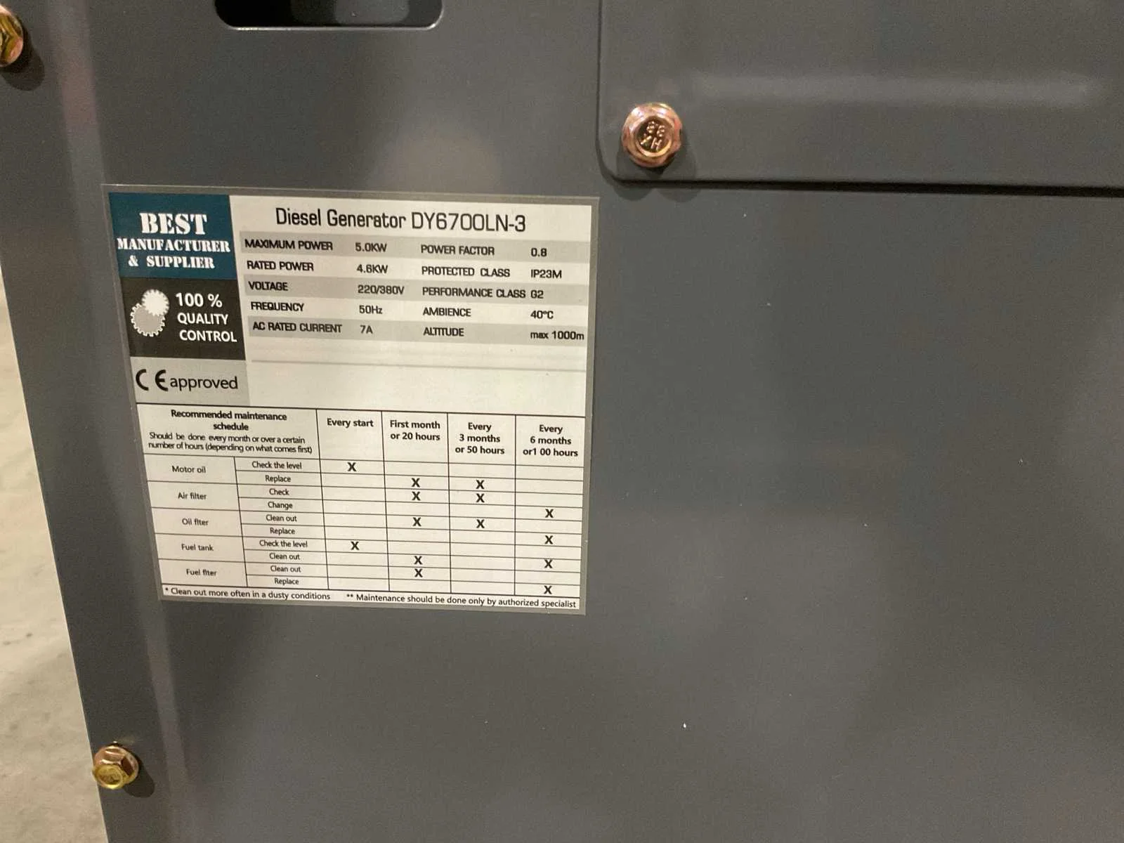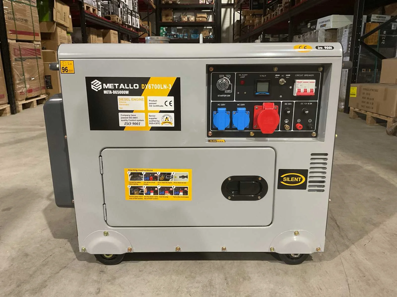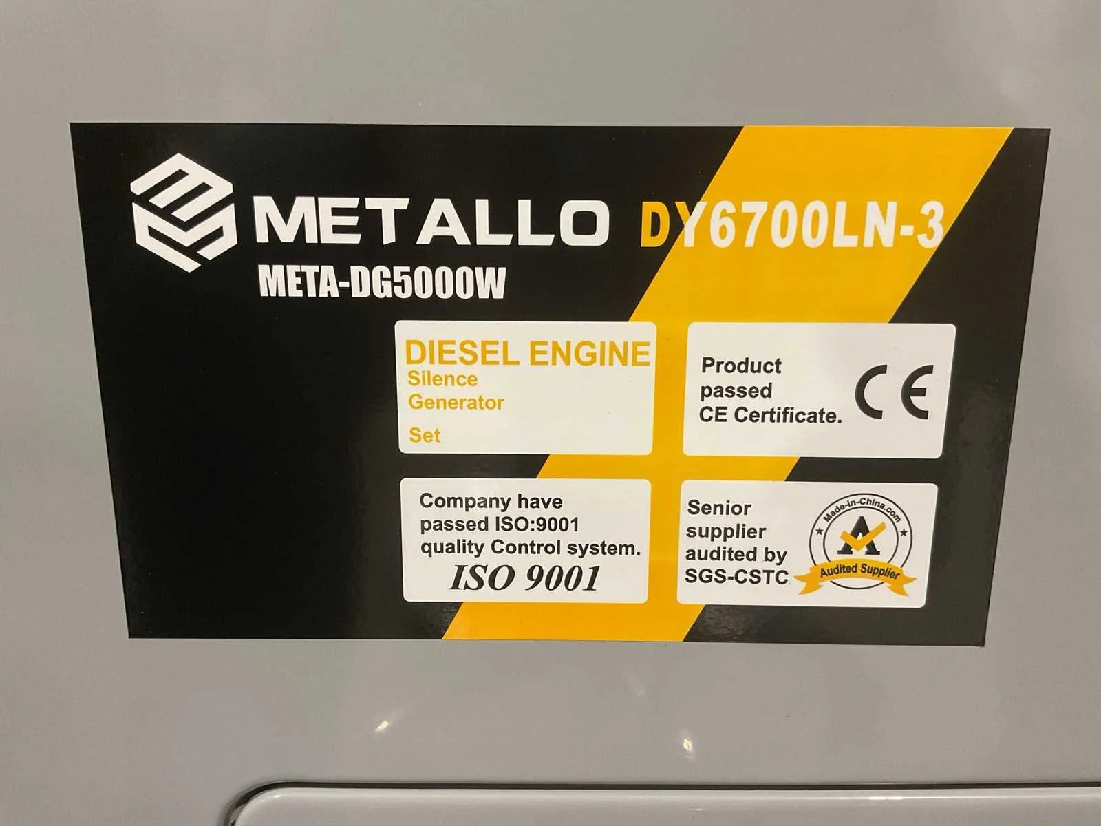 Voorzien van 418-cm³-dieselmotor; 4-takt; 15L-tank; 5,0 kW; frequentie 50 Hz; 230V-aansluiting; 380V-aansluiting; elektrische start; voltmeter; AVR-controller; 5kVA; ongebruikt in doos. Ongebruikt in doos (Afmeting transport verpakking 940x540x690 mm lxbxh, gewicht 150 kg) Merk: Metallo Type: META-DG5000W Bouwjaar: 2025 Capaciteit.: 5kVA Diesel: true Motorvermogen (kW): 5kW Luchtgekoeld: true Mobiel: true Machinegewicht: 150kg Totale afmeting L: 940mm Totale afmeting Breedte: 540mm Totale afmeting Hoogte: 690mm