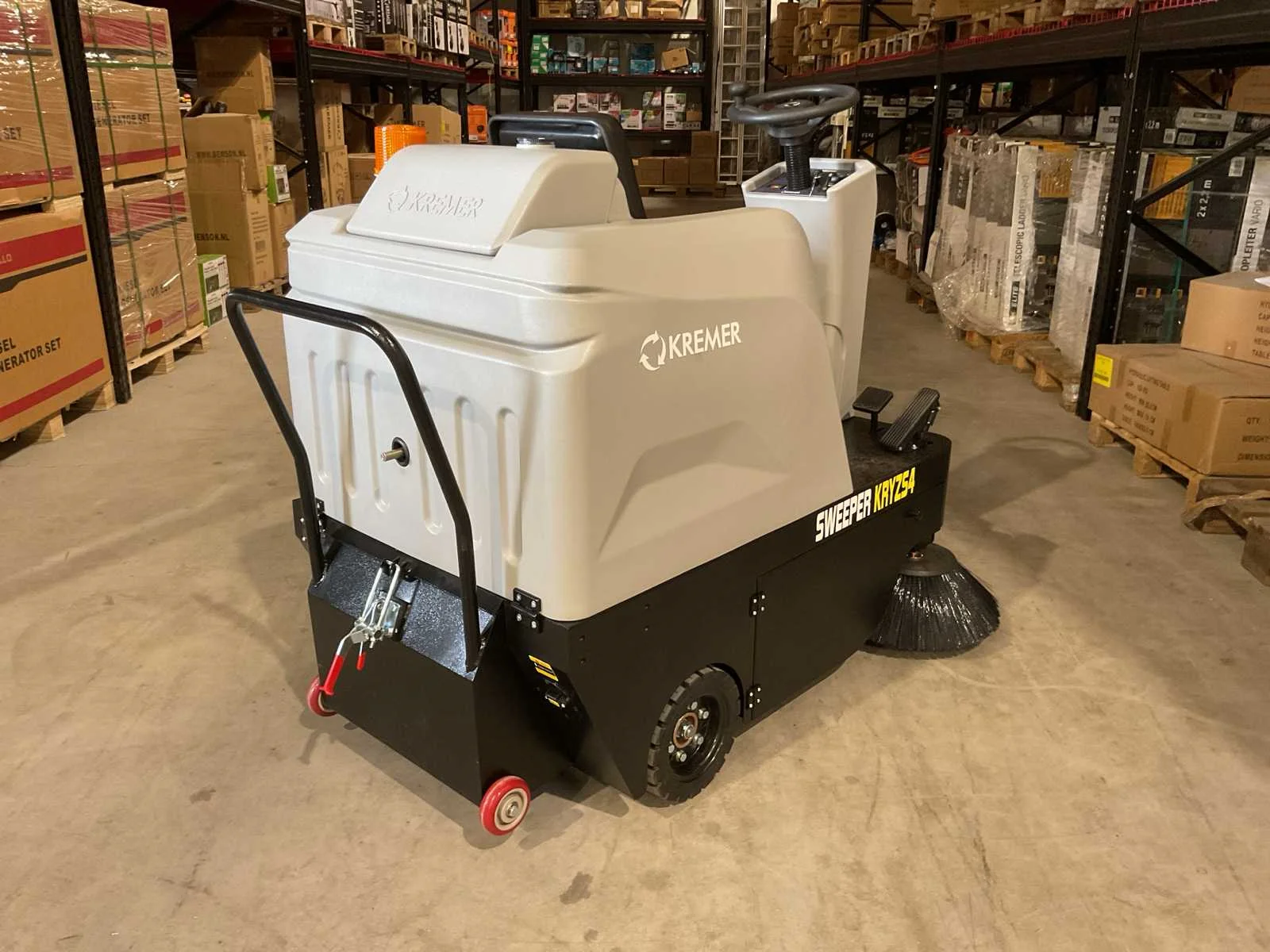Voorzien van 2 reserve borstels; Afmetingen (LxBxH) 160 x 116 x 130 cm; Accu 48 V; Veegbreedte 1250 mm; Breedte zijborstels 2*400 mm; Loopmotor 700 W; Accucapaciteit 48 v/ 65 ah * 4 stuks; Totaalgewicht 396 kg; Breedte hoofdborstel 500 mm; Werkefficiëntie 6380 m2/h; Vuilcontainerinhoud 80L; Rolborstelmotor 700W; Loopsnelheid 0-10 Km/h; Ongebruikt Merk: Kremer Type: Sweeper KRYZ54 Bouwjaar: 2025 Werkbreedte: 1250mm Elektrisch: true Aansluiting: 48V Eigen gewicht: 396kg Totale afmeting L: 160mm Totale afmeting Breedte: 116mm Totale afmeting Hoogte: 130mm