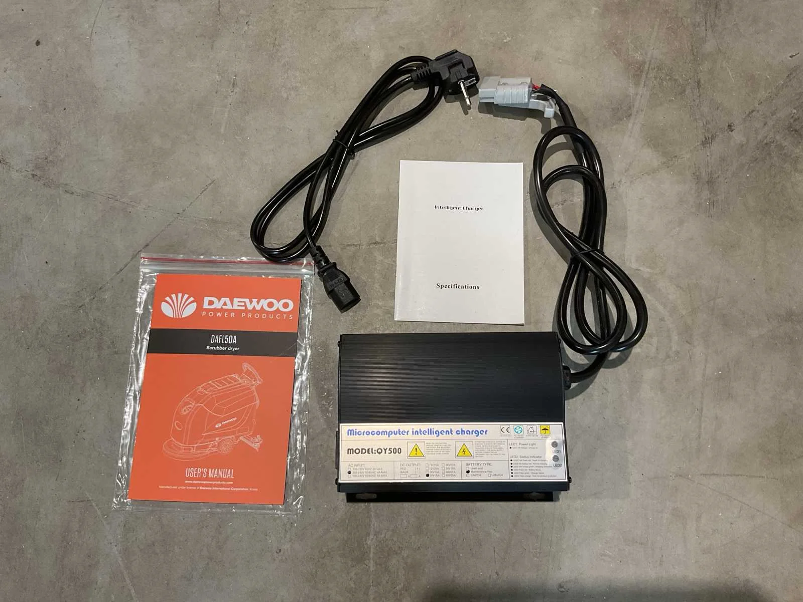 Voorzien van dweilfunctie; zuigfunctie; polijstfunctie; zuigmond borstel; lader; handleiding; ongebruikt in doos (Afmeting transport verpakking 1240x560x1170 mm lxbxh, gewicht 160 kg) Merk: Daewoo Type: DAFL50A Bouwjaar: 2025 Werkbreedte: 850mm Elektrisch: true Aansluiting: 24V Accu lader: true Eigen gewicht: 160kg Totale afmeting L: 1210mm Totale afmeting Breedte: 560mm Totale afmeting Hoogte: 1170mm