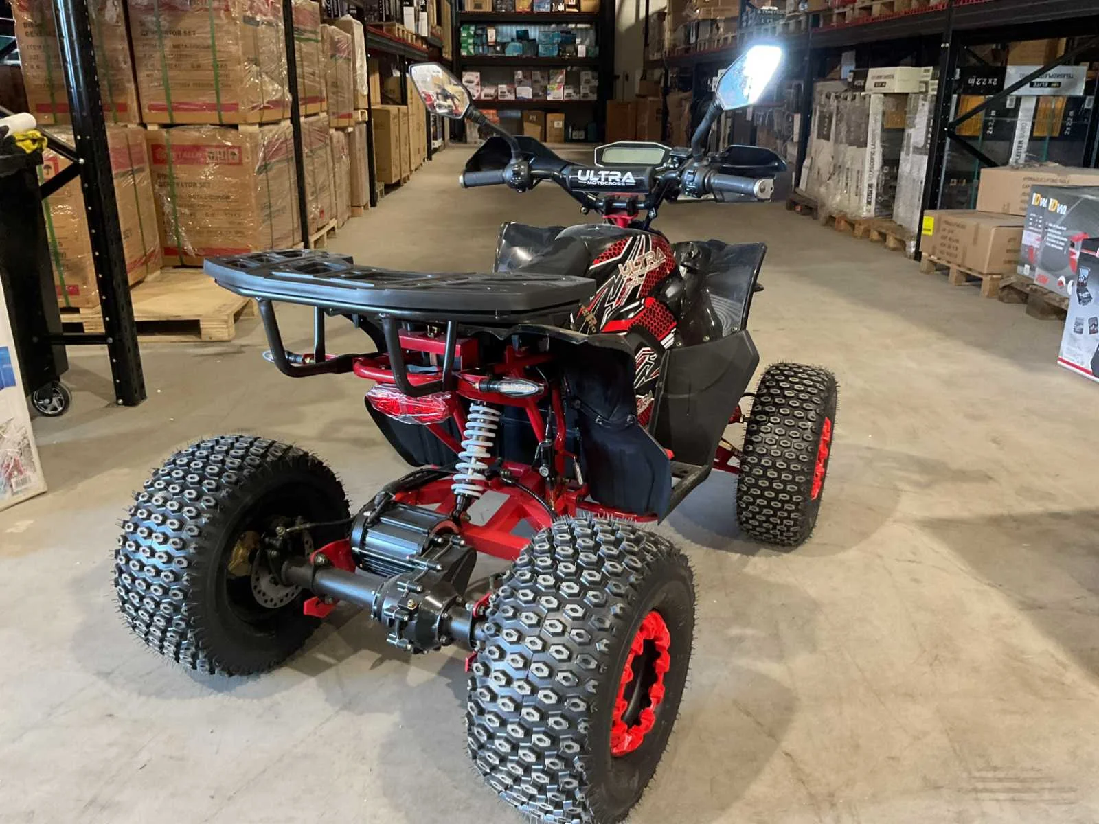 Voorzien van 60V 1500W elektrische motor; 3 verschillende snelheden; boost mode; led scherm; bandenmaat 8” inch; 2 sleutels; ongebruikt in krat (transport afmetingen 145x85x65 cm 120kg) Merk: Ultra Motocross Model: ATV005E Product type: ATX 1500 RD Gewicht: 110kg Aantal sleutels: 2 Transmissie: Automaat Bouwjaar: 2025 Brandstof: Elektrisch Kleur: Rood
