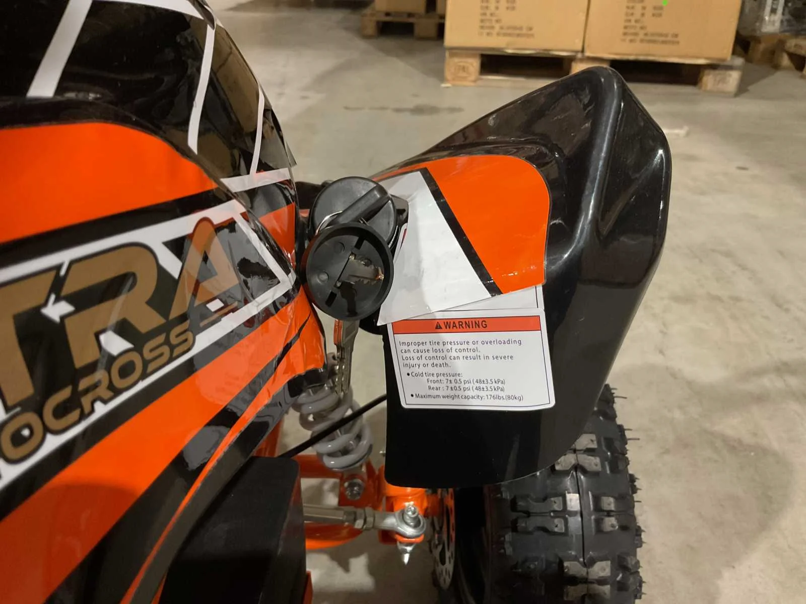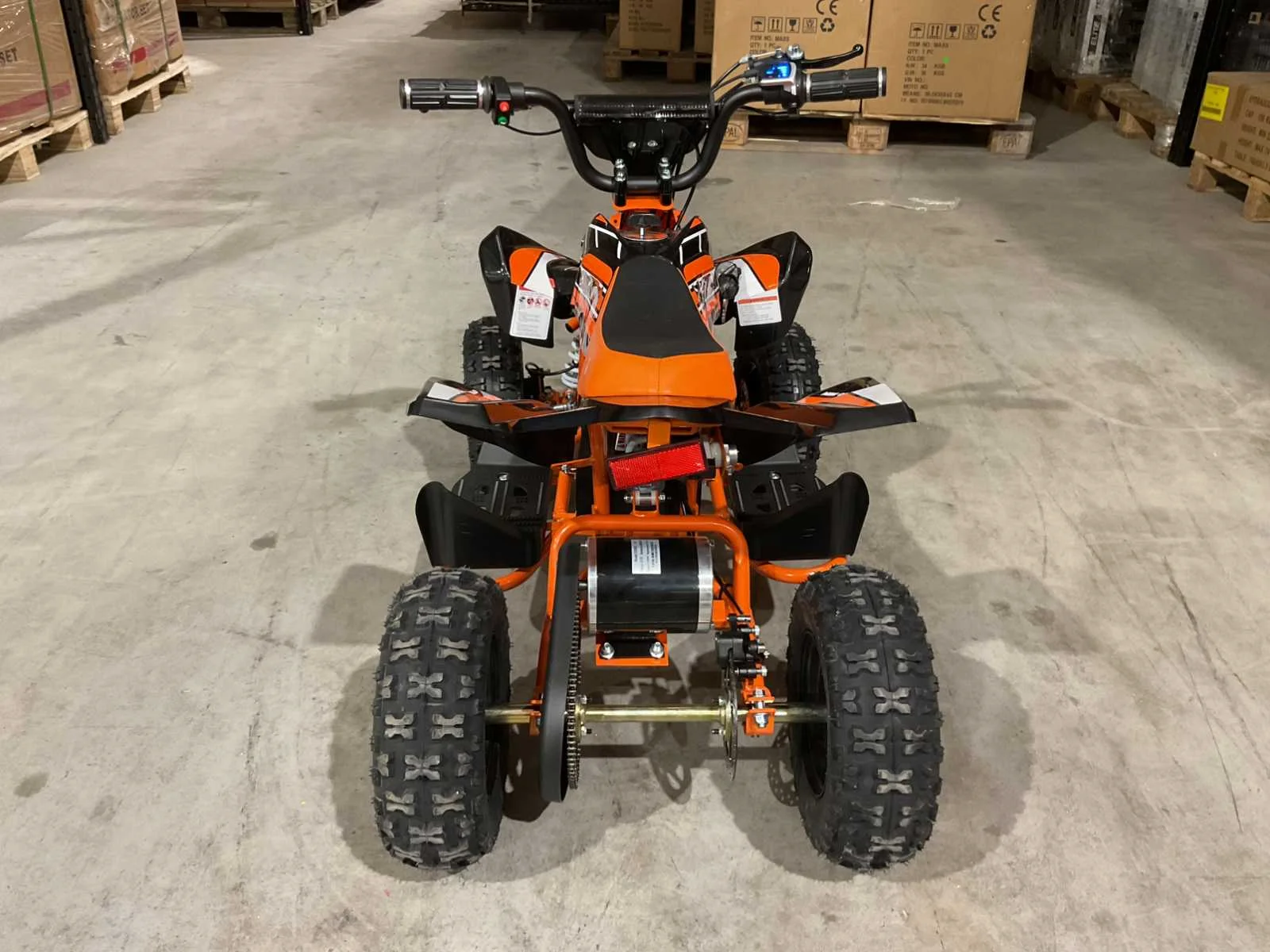 Voorzien van 1000W 36V elektrische motor; ouderen sleutel 3 verschillende snelheden; achterwielaandrijving; bandenmaat 6” inch; 2 sleutels; ongebruikt in doos (transport afmetingen 100x55x45 cm 48kg) Merk: Ultra Motocross Model: MA03E Product type: ATX 1000 OR Gewicht: 45kg Aantal sleutels: 2 Transmissie: Automaat Bouwjaar: 2025 Vermogen (kW): 1kW Brandstof: Elektrisch Kleur: Oranje Lengte: 100cm Breedte: 55cm Hoogte: 45cm
