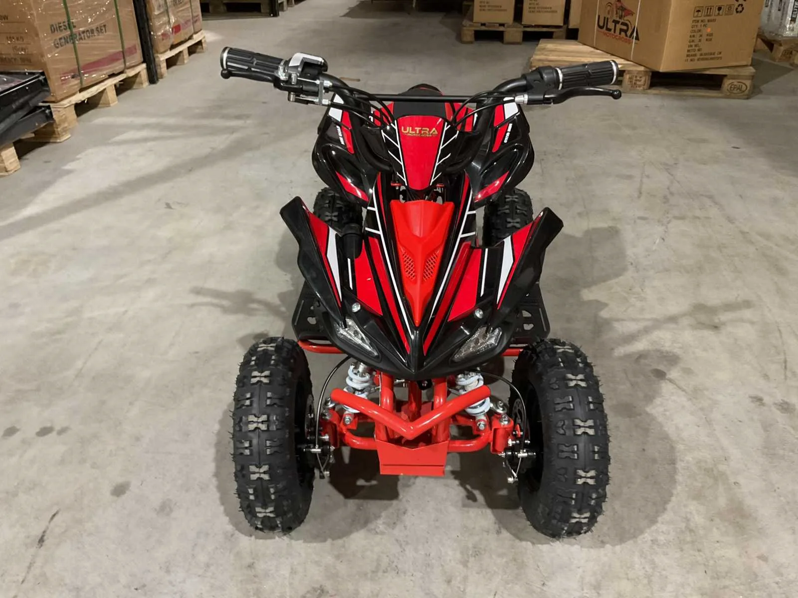 Voorzien van 1000W 36V elektrische motor; ouderen sleutel 3 verschillende snelheden; achterwielaandrijving; bandenmaat 6” inch; 2 sleutels; ongebruikt in doos (transport afmetingen 100x55x45 cm 48kg) Merk: Ultra Motocross Model: MA03E Product type: ATX 1000 RD Gewicht: 45kg Aantal sleutels: 2 Transmissie: Automaat Bouwjaar: 2025 Vermogen (kW): 1kW Brandstof: Elektrisch Kleur: Rood