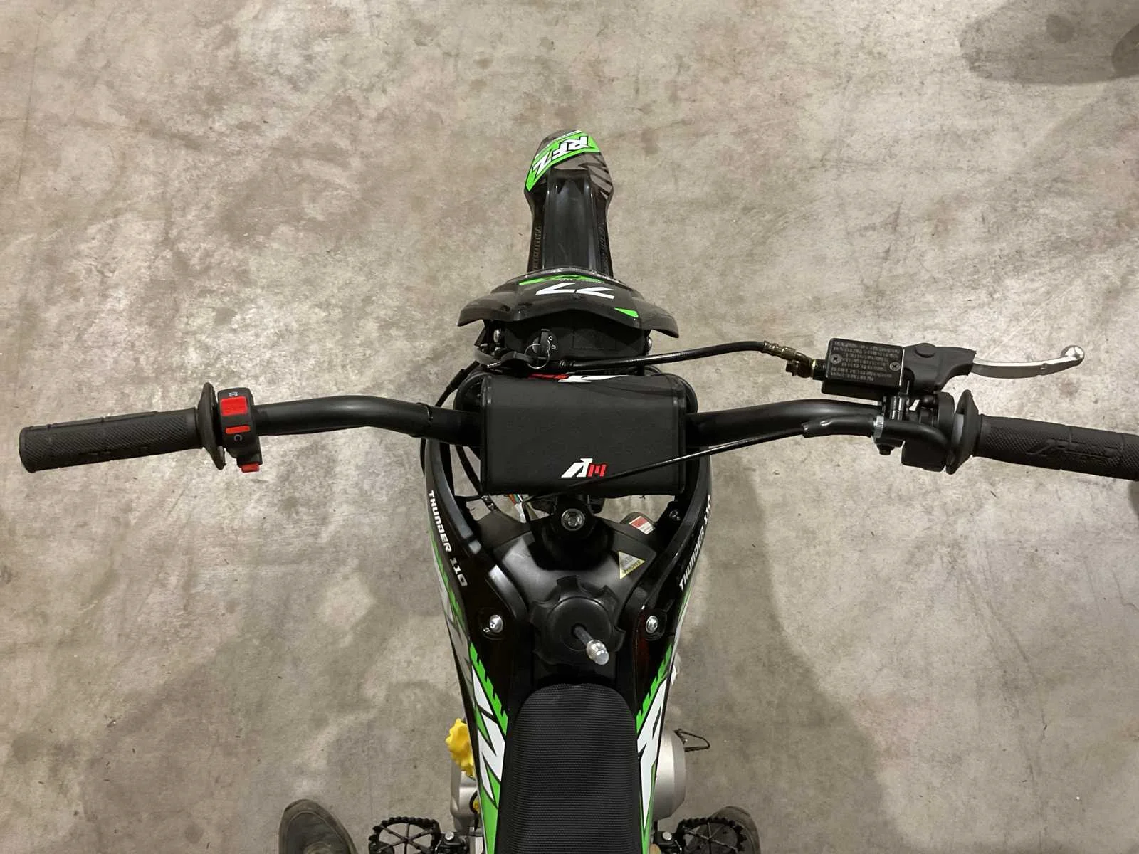 Voorzien van 110 cc motor; 4 takt; kick start; bandenmaat voor 14” inch achter 12” inch; hydraulische vering voor en achter; schijfremmen; verlichting; ongebruikt in doos (transport afmetingen 130x40x70 cm) Merk: Ultra Motocross Type: Thunder 110 GR Brandstof: Benzine Cilinderinhoud: 110cc Gewicht: 83kg Kleur: Groen Transmissie: Automaat Aantal sleutels: 2
