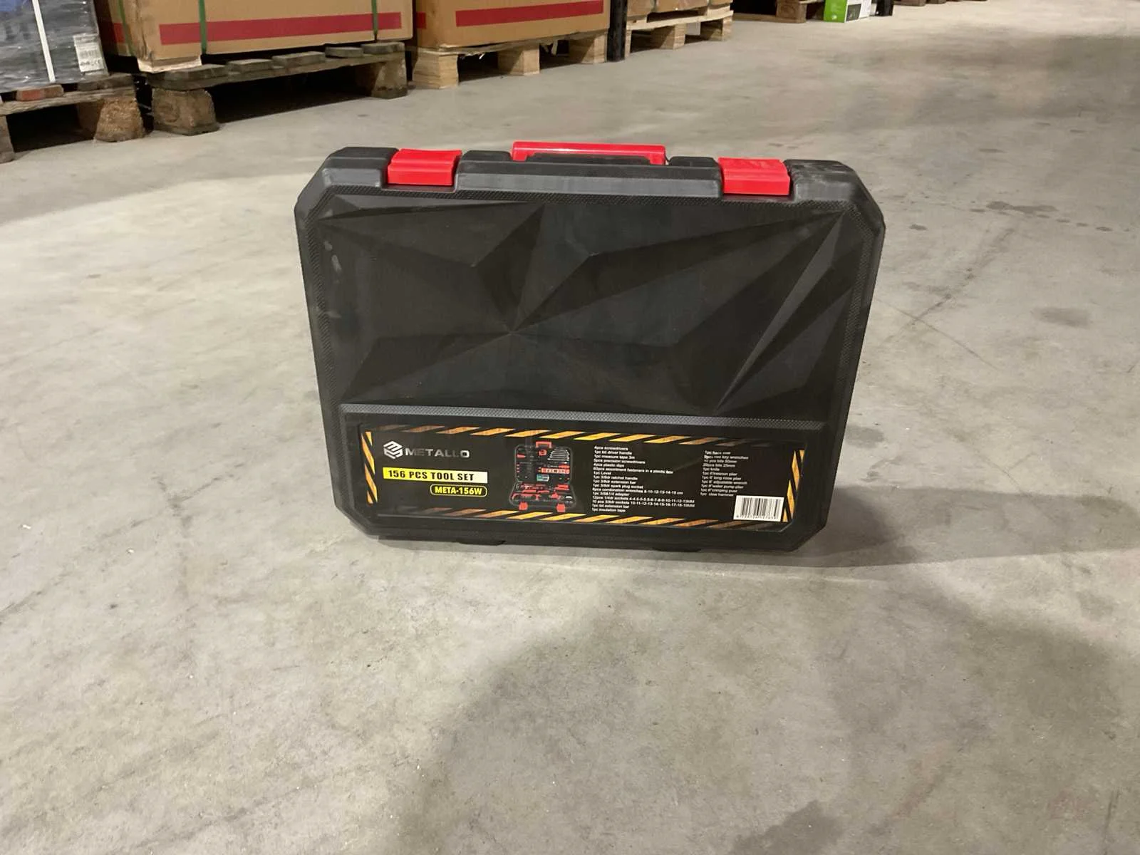 Voorzien van 4 stuks schroevendraaiers SL6*38, SL6*100; PH2*38, PH2*100; 1 stuk bit driver handvat; 1 stuk meetlint 3m; 5 stuks precisieschroevendraaiers; 4 stuks plastic dips; 60 stuks assortiment bevestigingsmiddelen in een doos; 1 stuk Niveau; 1 stuk 3/8dr ratelhandvat; 1 stuk 3/8dr verlengstuk; 1 stuk 3/8dr bougiedop; 6 ringsteeksleutels 8-10-12-13-14-15 cm; 1 stuk 3/8&1/4 adapter; 12 stuks 1/4dr doppen 4-4.5-5-5.5-6-7-8-9-10-11-12-13MM; 10 stuks 3/8dr doppen 10-11-12-13-14-15-16-17-18-19MM; 1 stuk bitverlengstuk; 1 stuk isolatietape; 1 stuk ijzerzaag; 9 stuks inbussleutels 1.5-2-2.5-3-4-5-6-8-10mm; 10 stuks bits 50 mm; 20 stuks bits 25mm; 1 stuk mes; 1 stuk 6'lnesnun tang; 1 stuk 6' langbektang; 1 stuks 6' verstelbare sleutel;1 stuk 8''waterpomptang; 1 stuk 6'' krimptang; 1 stuks klauwhamer; Ongebruikt in doos (Transport afmeting 450 x 90 x 360, Gewicht 5.58 KG) Merk: Metallo Met koffer: true Delig: 156 Type: META-156W Bouwjaar: 2025