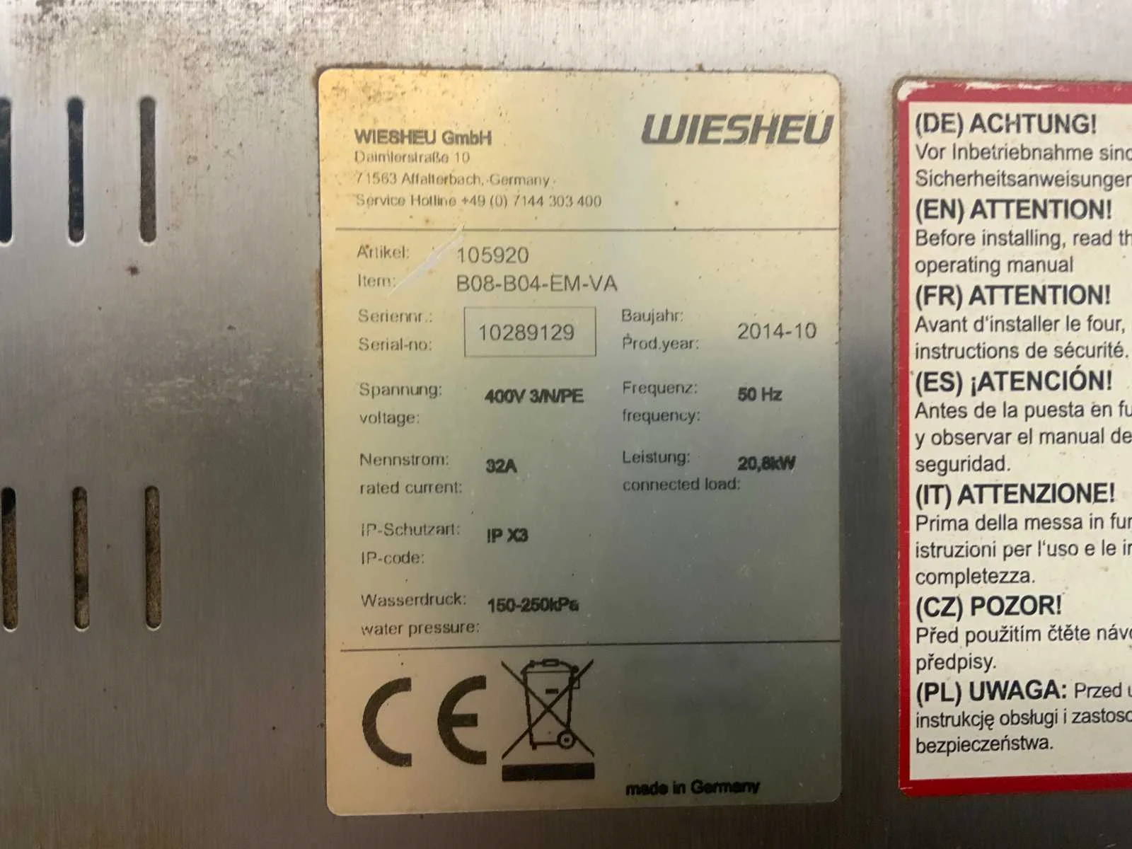 B08-B04-EM-VA; v.v. wieltjes; Purity C300 quell st filterpatroon; DH-SC-B; Merk: Wiesheu Type: B08-B04-EM-VA Aansluiting: 400V Elektrisch: true Rvs: true Vermogen: 20.8kW Totale afmeting L: 125cm Totale afmeting Breedte: 94cm Totale afmeting Hoogte: 266cm Bouwjaar: 2014 Met onderstel: true