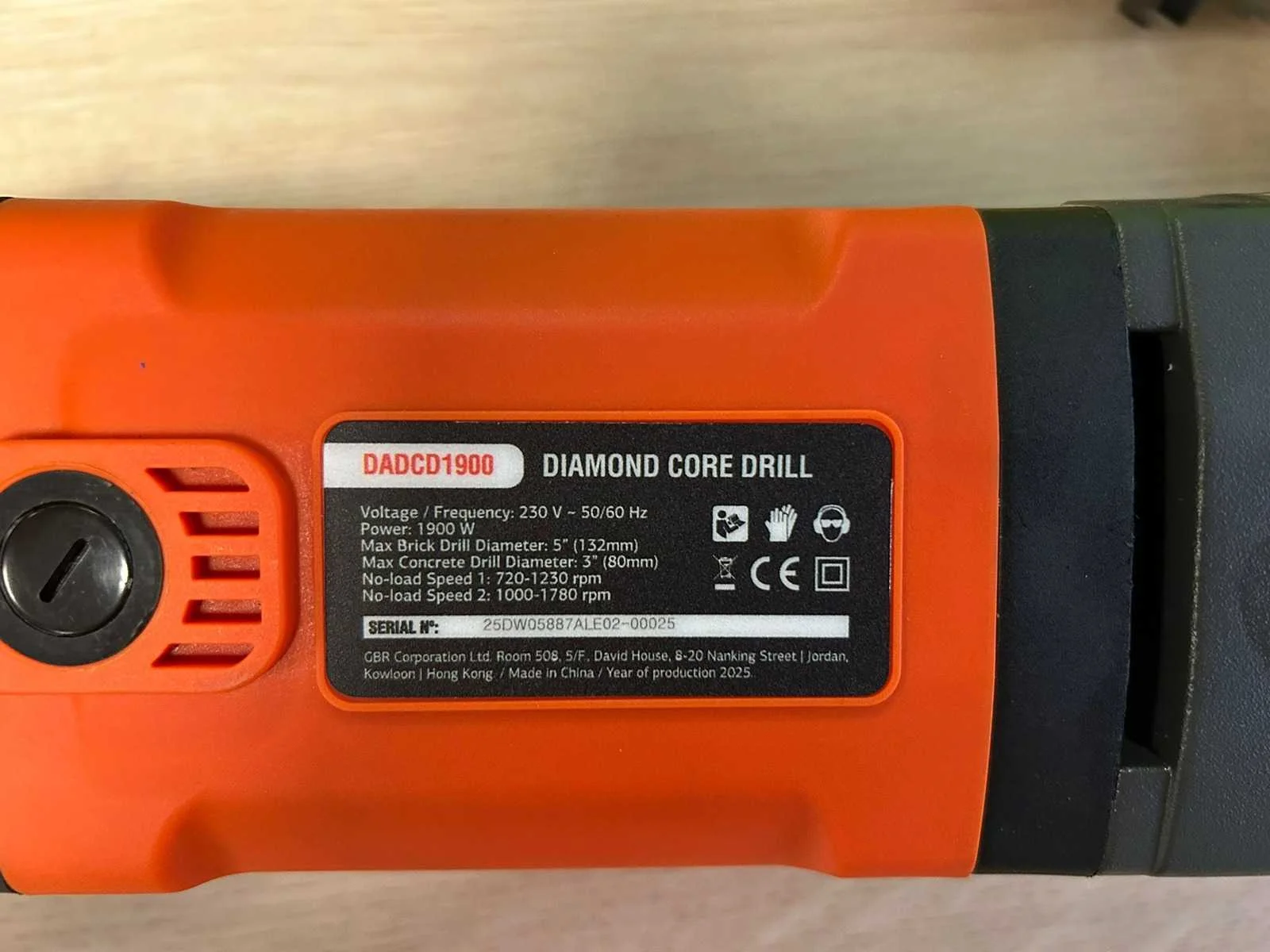 Ongebruikt; in een koffer; Max brick drill diameter 132mm; Max concrete drill diameter 80mm; no load speed 1 720-1230rpm; no load speed 2 1000-1780rpm; met watertoevoer; 7749 Merk: Daewoo Type: DADCD1900 Bouwjaar: 2025 Capaciteit.: 132mm Vermogen: 1900W Aansluiting: 230V