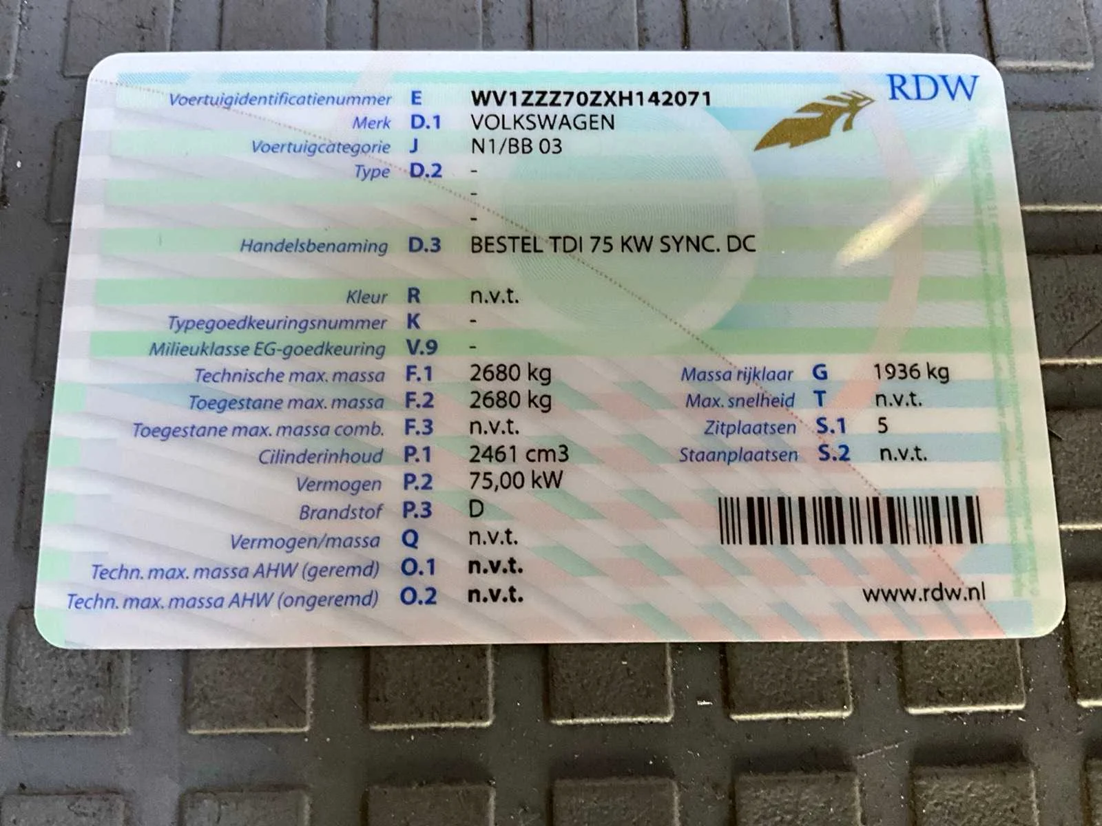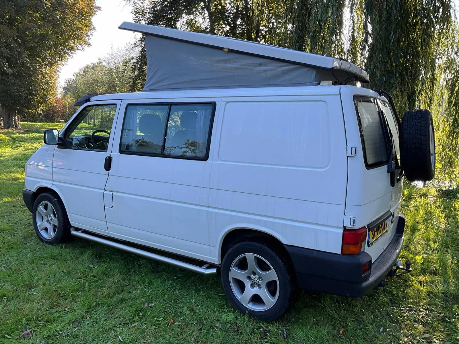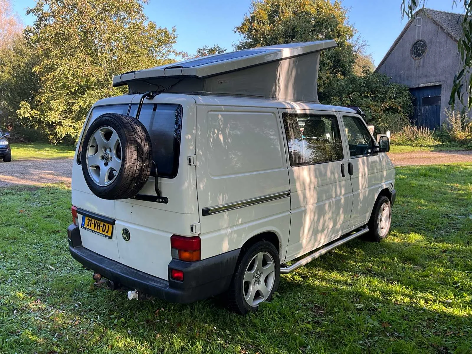 Voorzien van elektrische installatie met een extra accu onder de bestuurdersstoel en een systeem met zonnepanelen waardoor deze accu niet alleen wordt opgeladen tijdens het rijden, maar ook als de zon schijnt; Metapol dak; dak uitgerust met bovenbed geschikt voor twee kinderen of een volwassene; versnellingsbak met korte eerste versnelling; reservewiel achterop; elektrisch bedienbare ramen, trekhaak Kenteken: T-930-KS Merk: Volkswagen Type: Multivan Syncro Bouwjaar: 1999 Chassisnummer: WV1ZZZ70ZXH142071 Afgelezen kilometerstand: 299911km Vermogen (kW): 75kW Brandstof: Diesel Datum eerste toelating: 12-05-1999 Datum eerste toelating (NL): 12-05-1999 APK vervaldatum: 10-05-2024 Transmissie: Handgeschakeld Vermogen (pk): 102 Kentekenpapieren compleet?: true Maximaal trekgewicht ongeremd: 700 Maximaal trekgewicht geremd: 2000 Self drive export possible : true