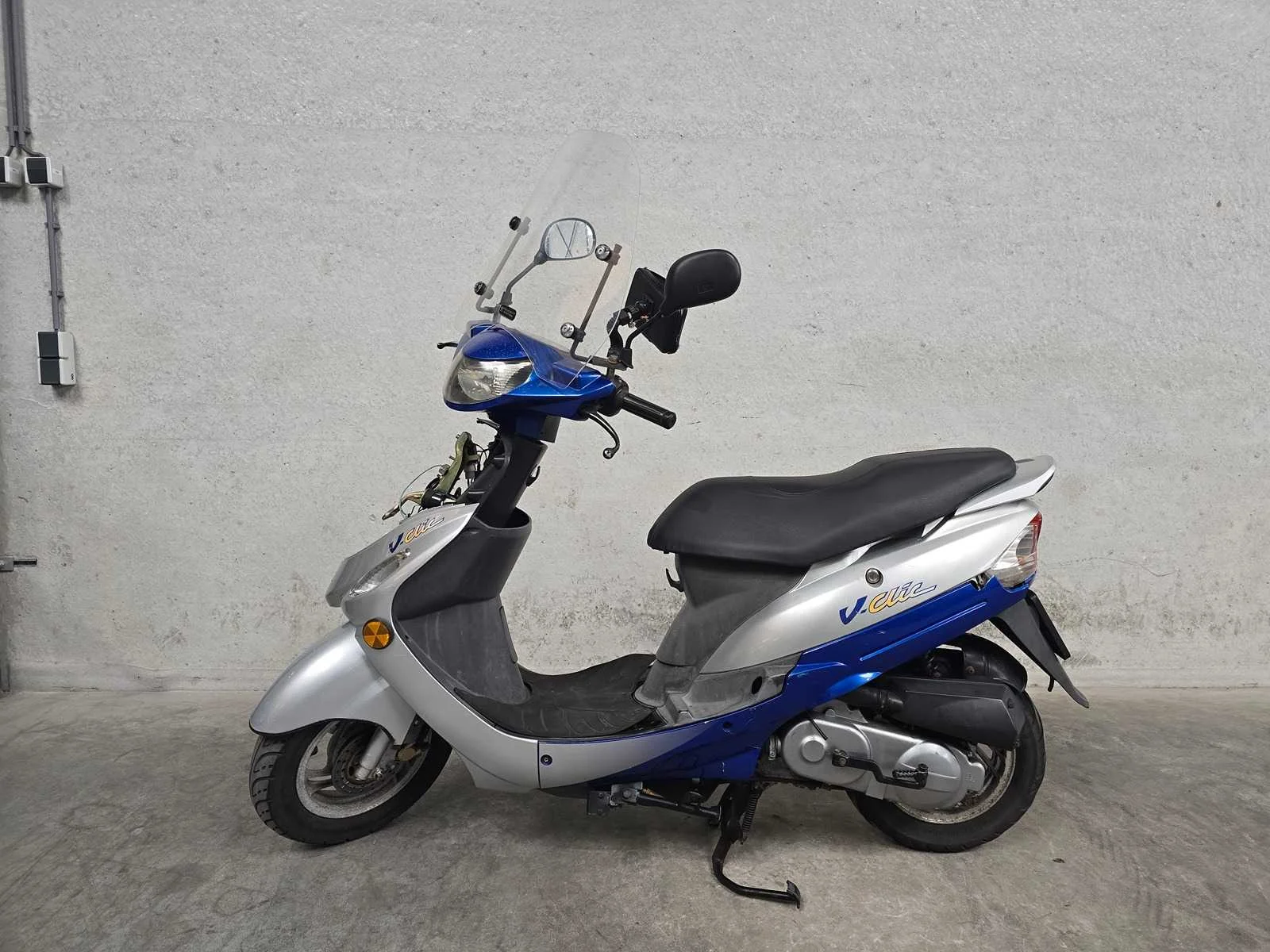 1 sleutel - loopt niet - technische / onderhoud staat onbekend - Merk: Peugeot Model: Snorscooter Type: V-Click Handelsbenaming: FB50QT-6A Kenteken: FV509S Datum eerste toelating: 2008-08-22 Bouwjaar: 2008 Transmissie: automaat Brandstof: benzine Kleur: grijs blauw
