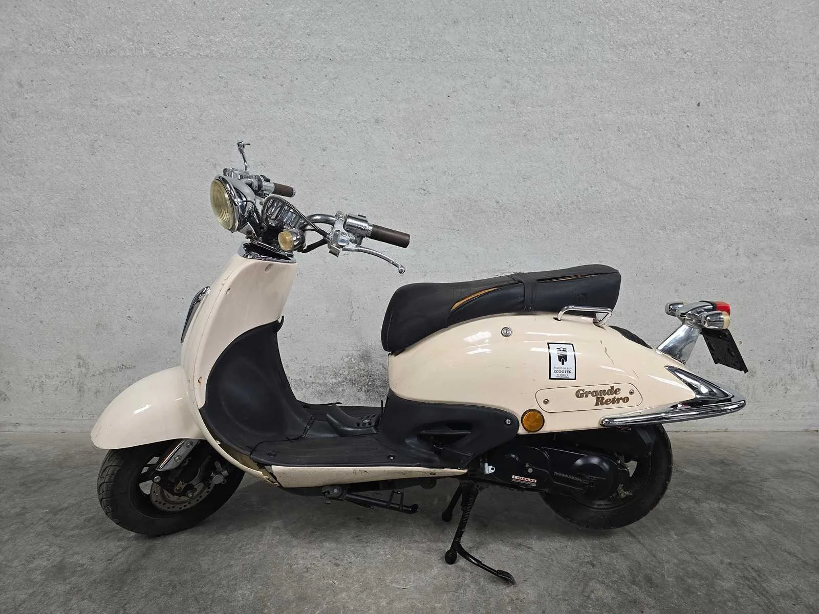 Geen sleutels - technische / onderhoud staat onbekend - Merk: BTC Model: Snorscooter Type: Grande Retro Handelsbenaming: OLD VERSION Kenteken: DGJ70R Datum eerste toelating: 2016-09-06 Bouwjaar: 2016 Transmissie: automaat Brandstof: benzine Kleur: creme