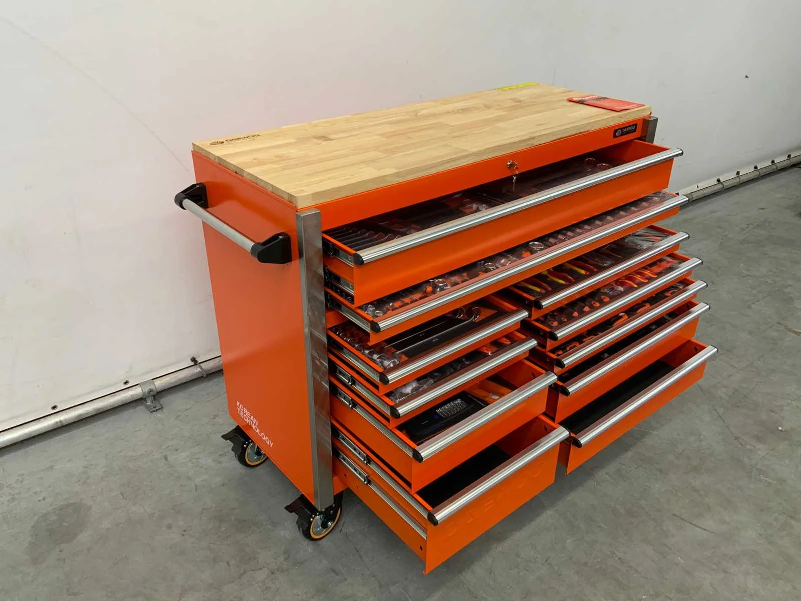 Ongebruikt; gereedschap in plastic verpakt; 12-delig tangenset; 13-delig hamerset; 14-delig meetset; 36-delig slagmoersleutel set; 21-delig sleutels met T-greep; 41-delig schroevendraaierset; 29-delig combinatiesleutels; 12-delig ringsleutels; 125-delig deppenset; 84-delig bitjes set; 6443 Merk: Daewoo Type: DAMW387